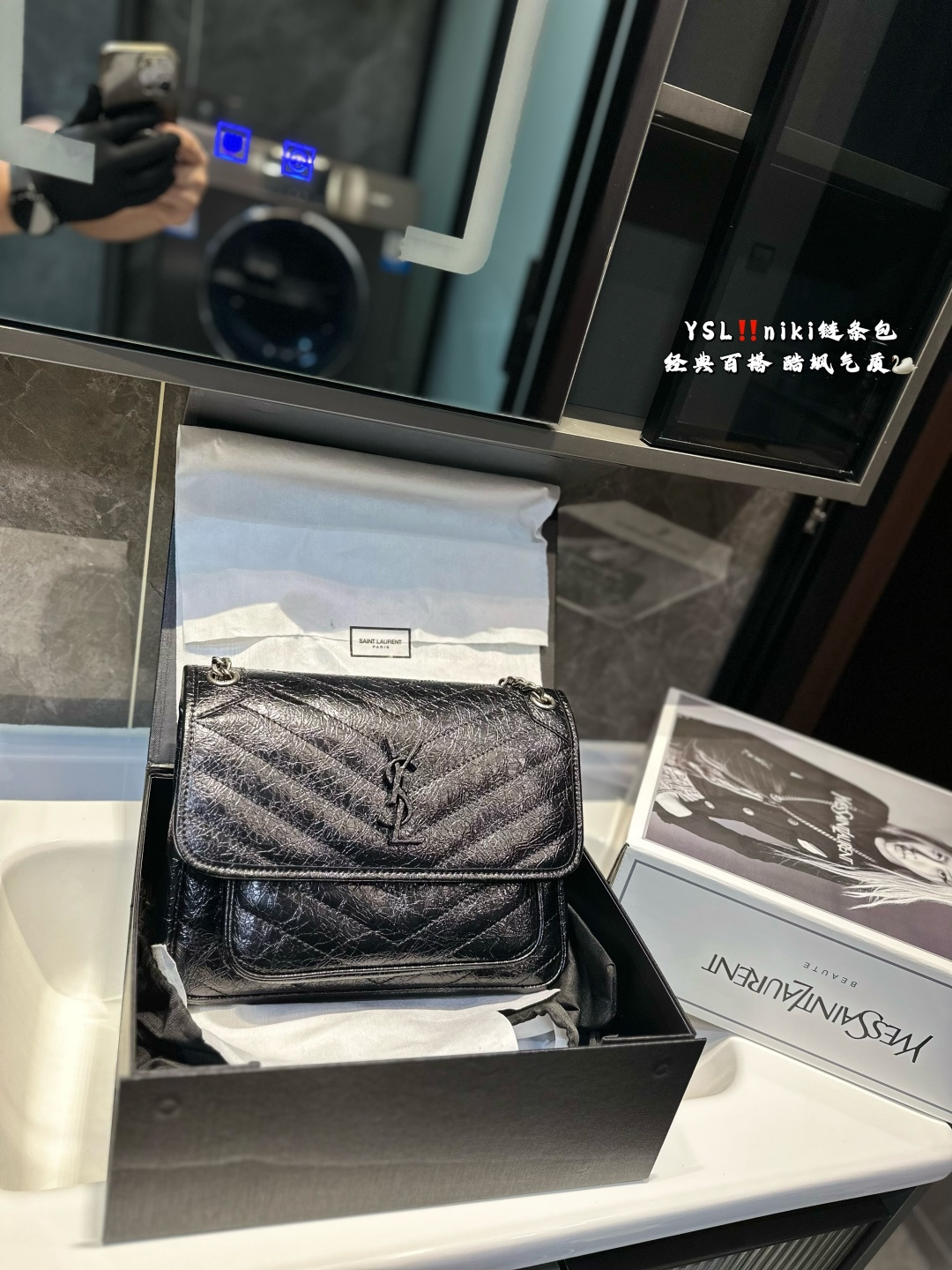 ❤️💰415/💰400(礼盒包装)❤️ 圣罗兰邮差包 非常特别,低调的有些酷,背起来特别的能体现时髦 个性 帅气女人的魅力,它就是YSL目前人气最高的niki邮差包。背这款包的女人都很不简单,不是明星超模就是时尚潮人,niki邮差包这两年,凭借明星别具一格的个性风格,真的圈了好多粉!尺寸:大号27 22 小号22 17