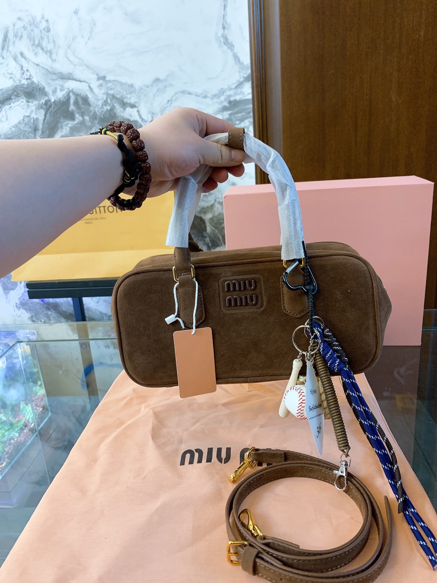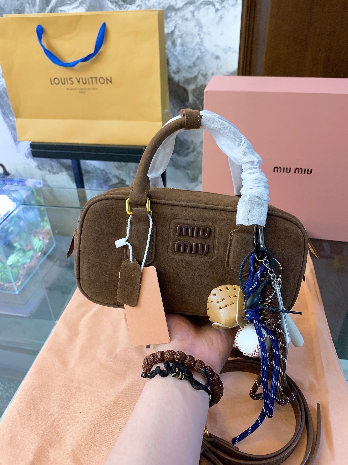 💰385/💰380全套礼盒 MIU MIU缪缪 Arcadie系列 保龄球包单肩斜挎手提包 复古,时尚,可爱,把所有美的元素都集体在中号包包的身上了。美拉德焦糖颜色。把秋天的针织和大衣,连衣裙,短裙搭配得超文艺,复古,时尚,气质,美美哒。纯牛皮材质,奶乎乎,软绵绵,容量也是足够了,日常生活用品轻松纳入。 尺寸:28-7-13/22-7-12