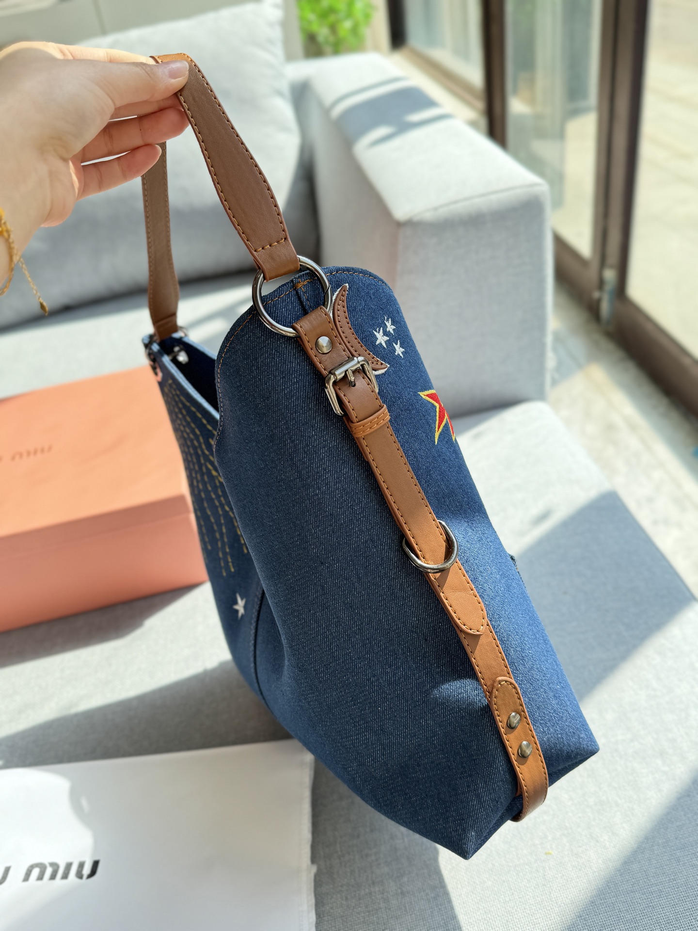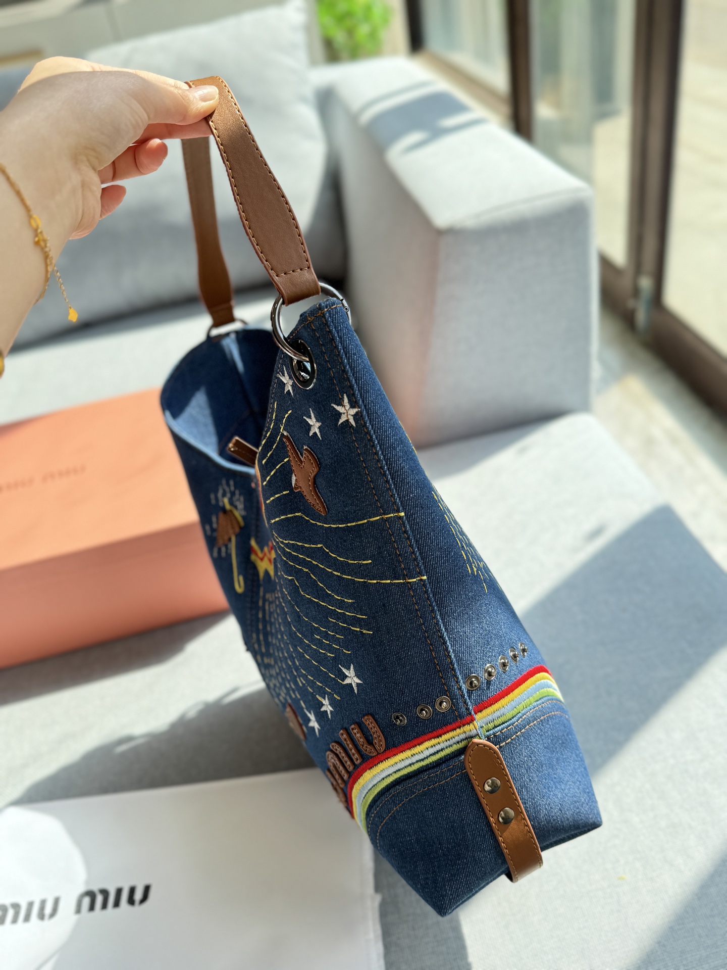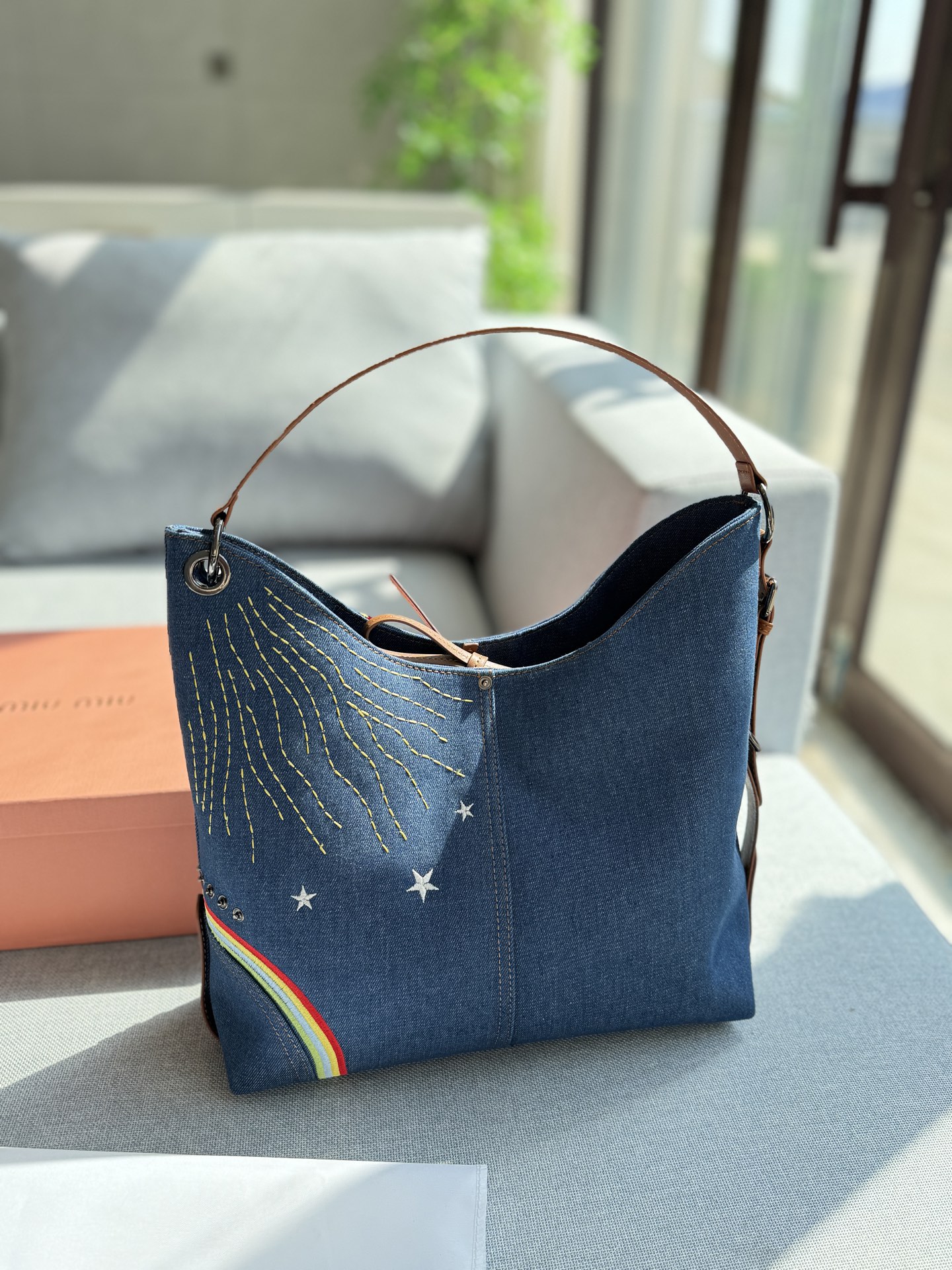 💰370 折叠盒 size:32.5×33 MIUMIU 缪缪 涂鸦刺绣 丹宁牛仔布 腋下包 托特包 购物袋 中古包 这只童趣牛仔中古包我太爱了!! 这只miu子也太好看了! 五颜六色童趣感刺绣搭配牛仔 设计也太超前了 超级洋气,时髦精的托特 轻便简约,慵懒随性 超大空间,又高级又能装