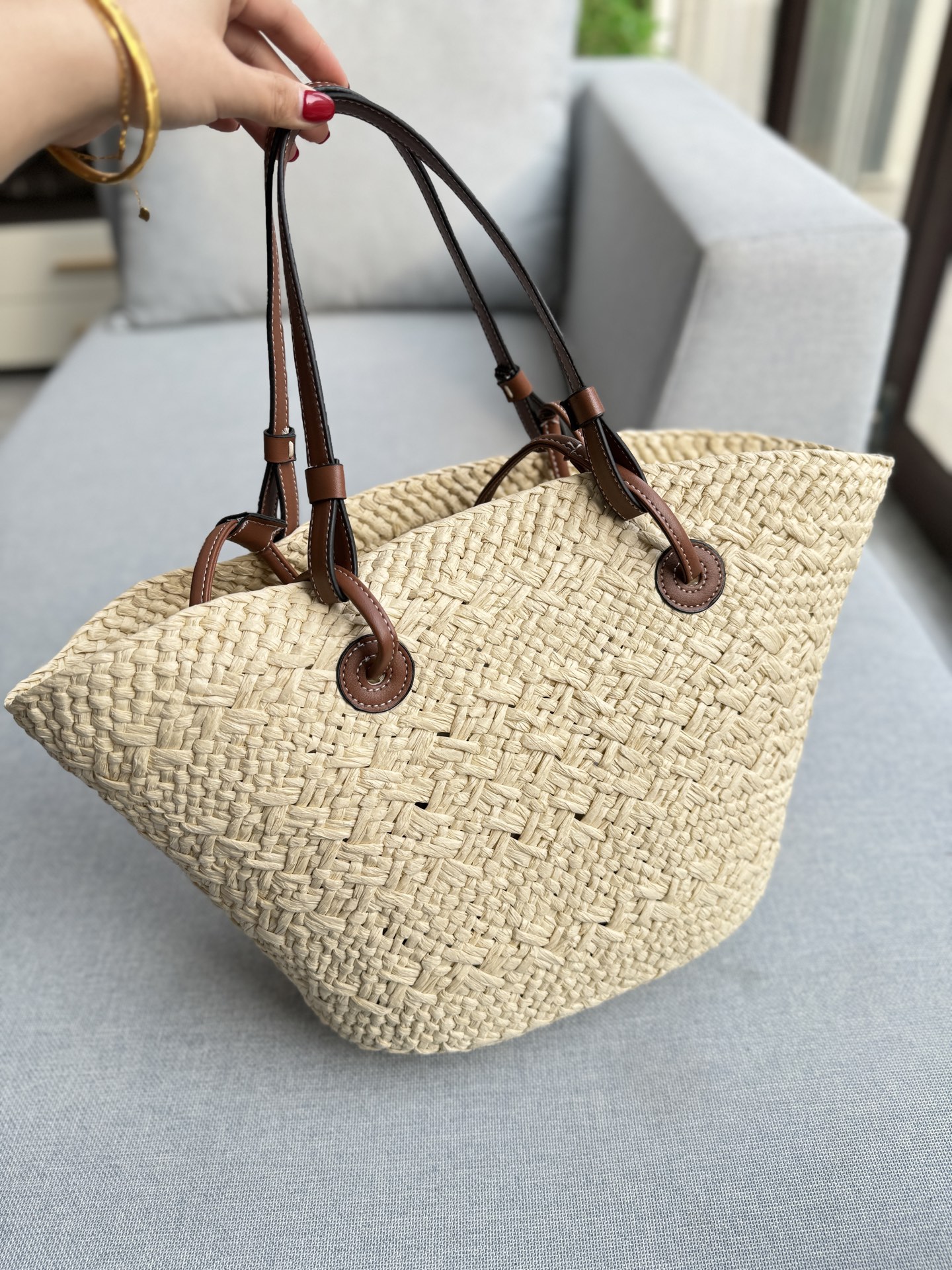 💰275 飞机盒 size:48×27 CELINE赛琳 草编 腋下包 手提单肩包 凯旋门时尚海滩编织托特包 随着夏季的脚步渐近,是时候选一款完美的度假包来搭配你的夏日悠闲时光了。凯旋门草编包带来清新的夏日风情,让你在沙滩或街头都散发着无与伦比的风格。