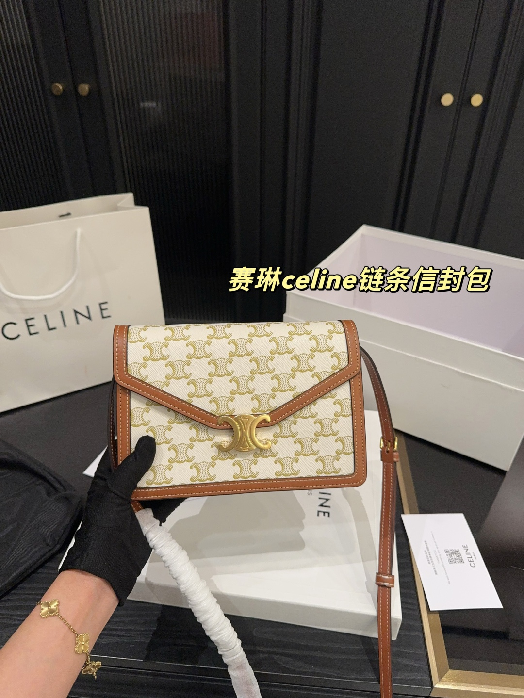 💰380配盒⚠️尺寸21.14 赛琳celine链条信封包 白色老花限量好美!真心推荐这款信封包,不仅是最新款还是一款只有布里斯班快闪店有的白色老花背上太有感觉了,真的百搭又活泼,你不冲吗?