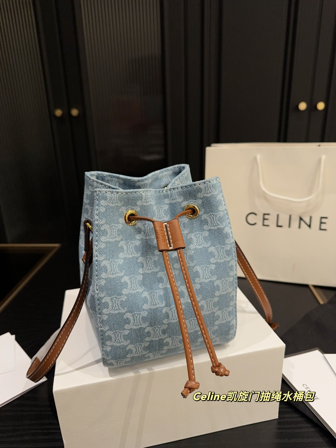 小号💰345折叠盒⚠️尺寸14.20 赛琳Celine凯旋门抽绳水桶包