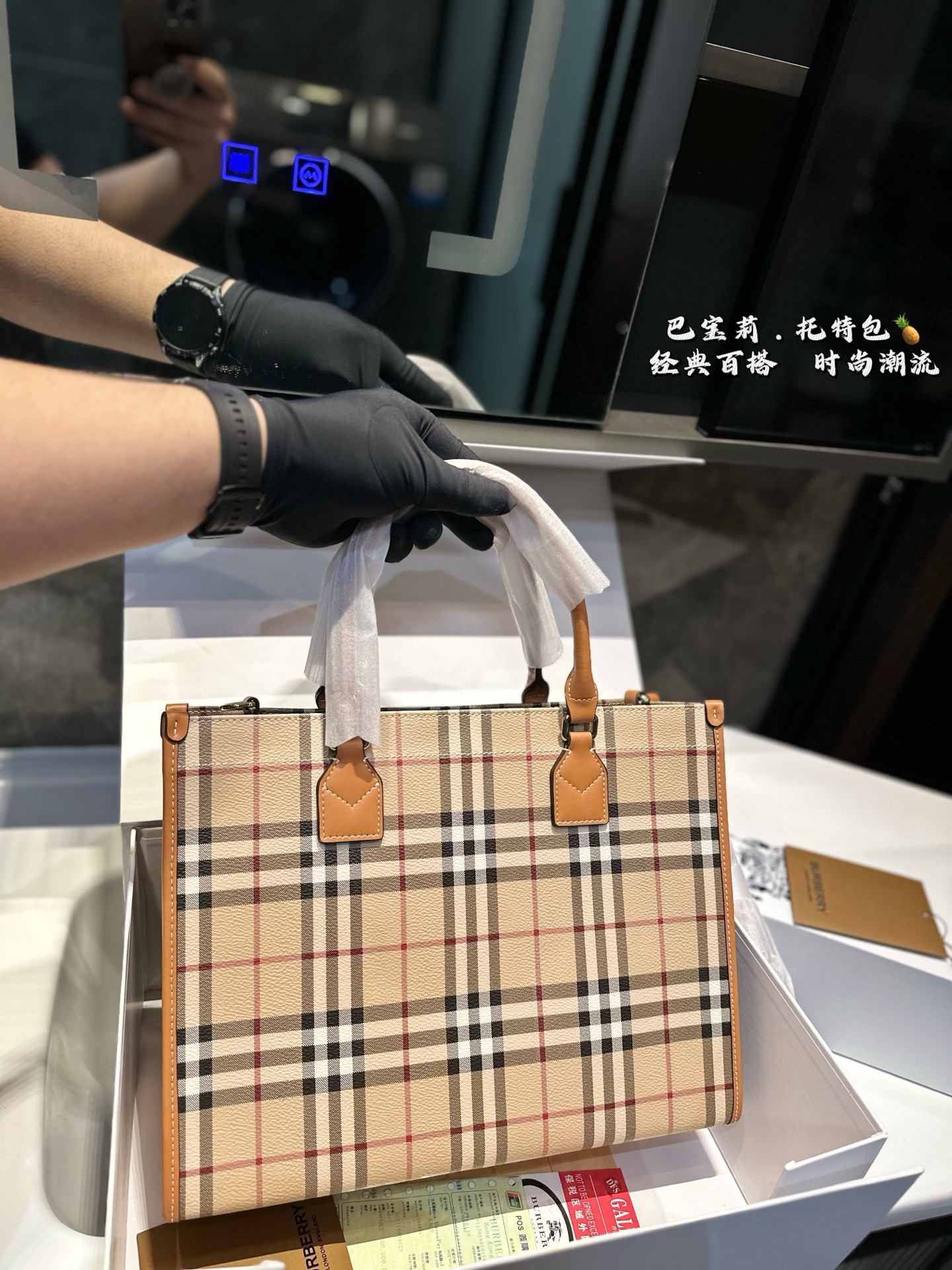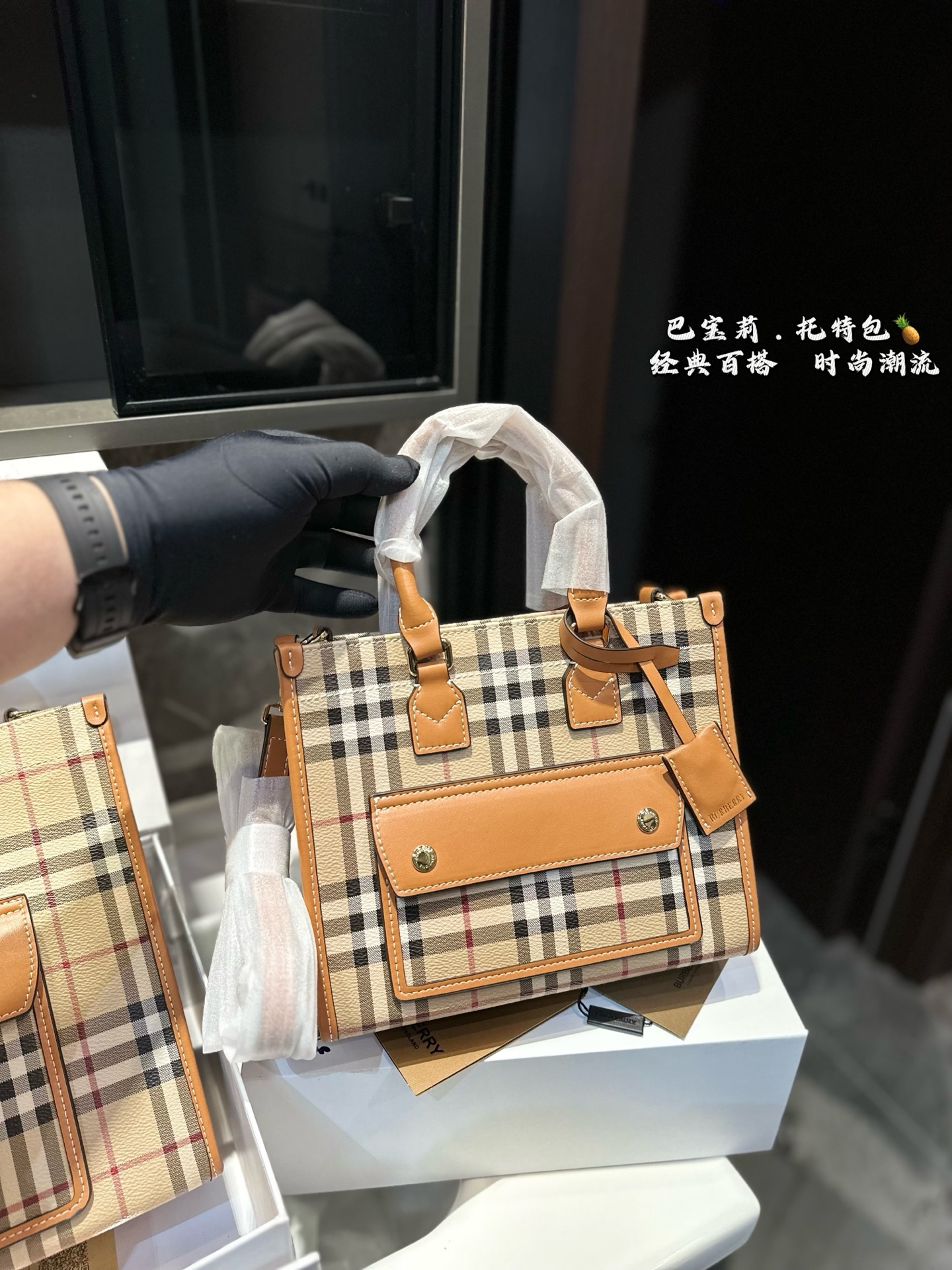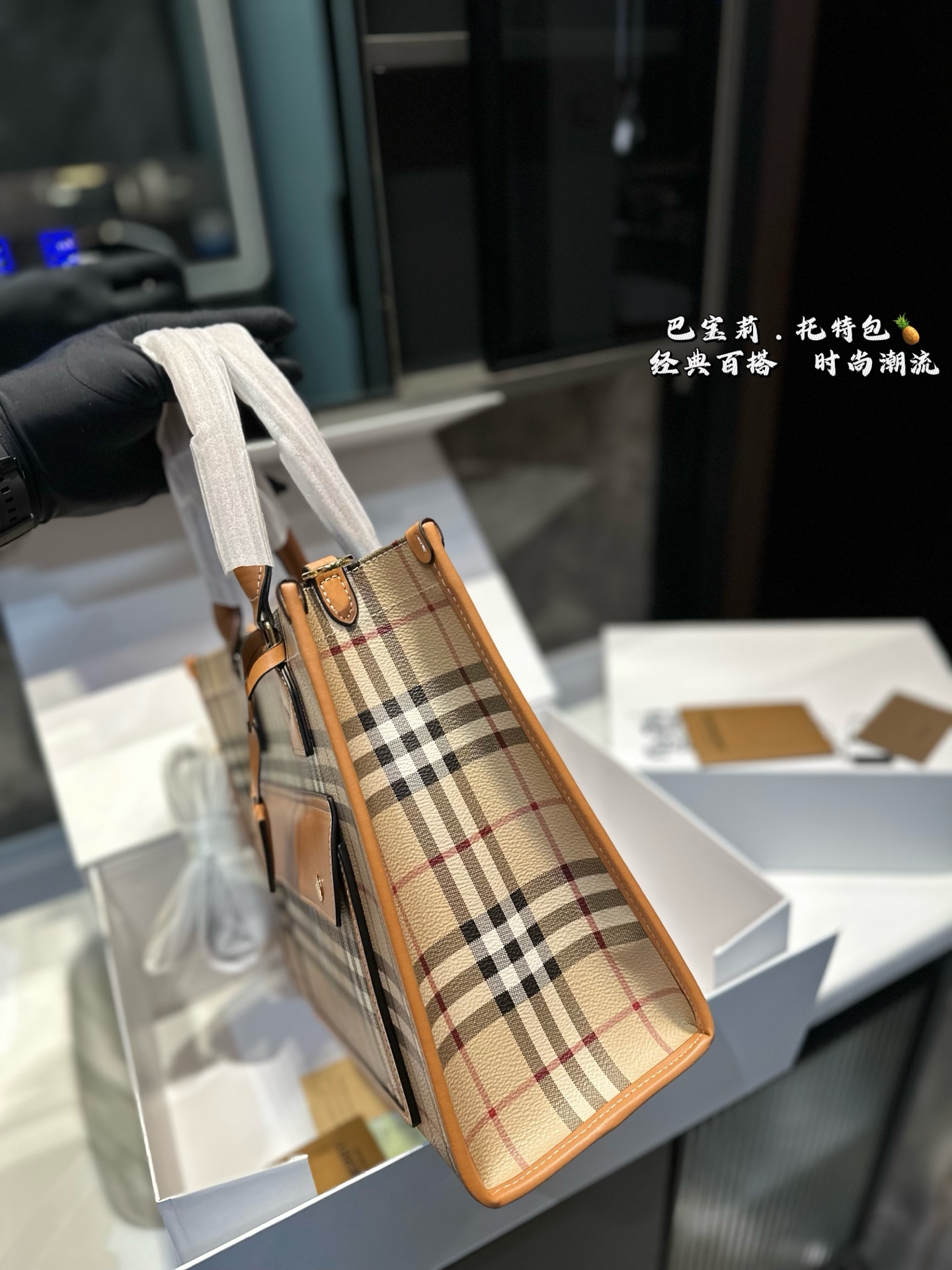 ❤️💰380💰370(礼盒包装)❤️ 巴宝莉Burberry经典格子托特包经典格纹包包,时尚英伦风永不过时!尺寸23.19/33.25