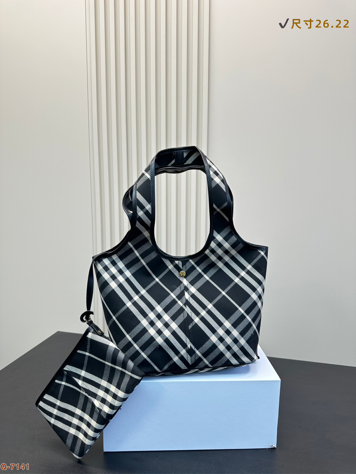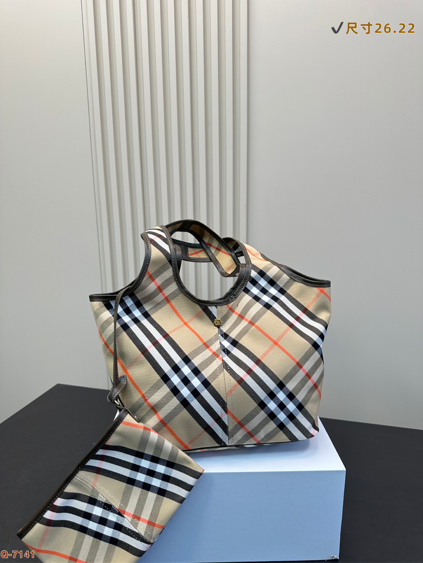 💰380 配礼盒 巴宝莉Burberry 的托特包已经 Next level了! 包包自带按扣安全感满满 附赠同色系小手包 满足多种使用方法 斜式格纹的设计简约而不简单 让人超想拥有! 尺寸26.22