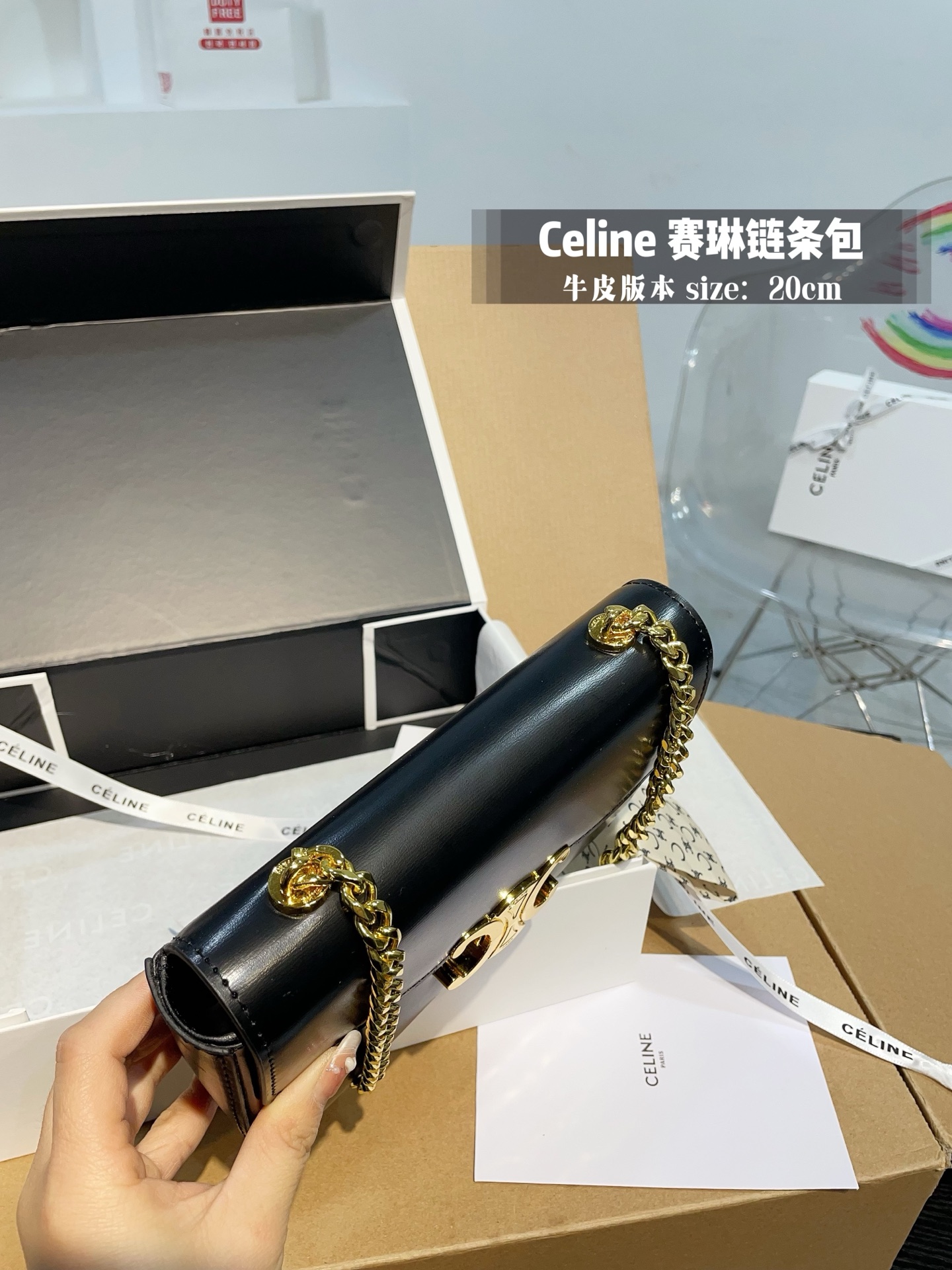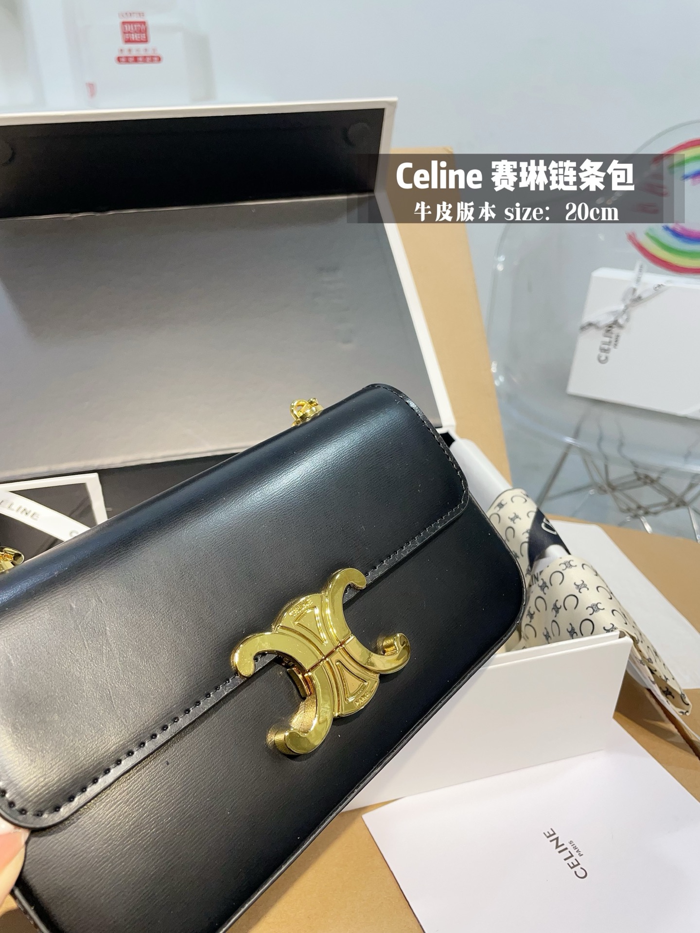 原厂牛皮👑💰360 折叠礼盒+专柜防尘袋+丝巾 证书 赛琳Celine 牛皮 腋下包 CELINE|2023王炸凯旋门腋下包CELINE2023的王炸包包-凯旋门腋下包,太适合夏天了,掐指一算又是这一季的断货爆款!一身黑色系搭配这个黑金凯旋门也毫不逊色,抛光小牛皮的光泽感,会有Bling Bling的反光点◆太喜欢 CELINE这一季的单品了,简直就是贝拉本拉!这个小包包真的是可盐可甜!暗黑风,辣妹风的小姐姐也可尝试夏天穿一个Zaa小背心配上这个包包出门!就很无敌 尺寸20.11 cm