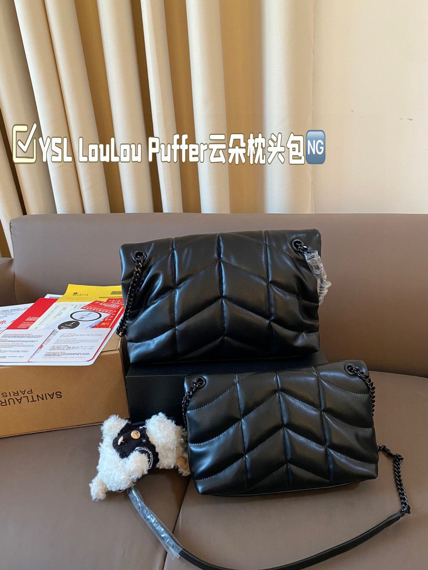 💰365/💰355 带挂件 配礼盒🎁. YSL LouLou 💰uffer云朵枕头包 loulou今年专柜超火爆 柔软舒适胖乎乎的外形像拿着棉花糖颜值很高的一款呀! 实用性满分+复古范十足怎么搭配都好看又百搭自圣罗兰 尺寸大号28*18/小号23*14