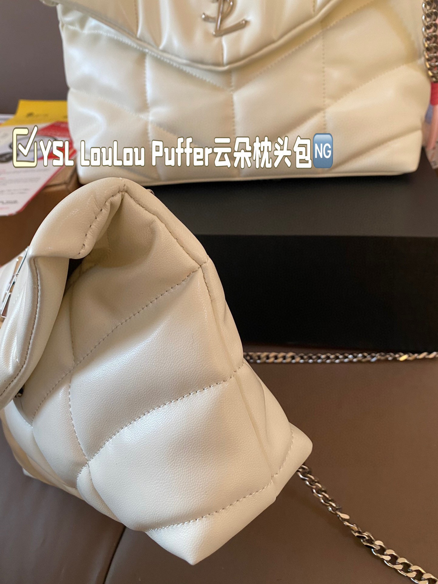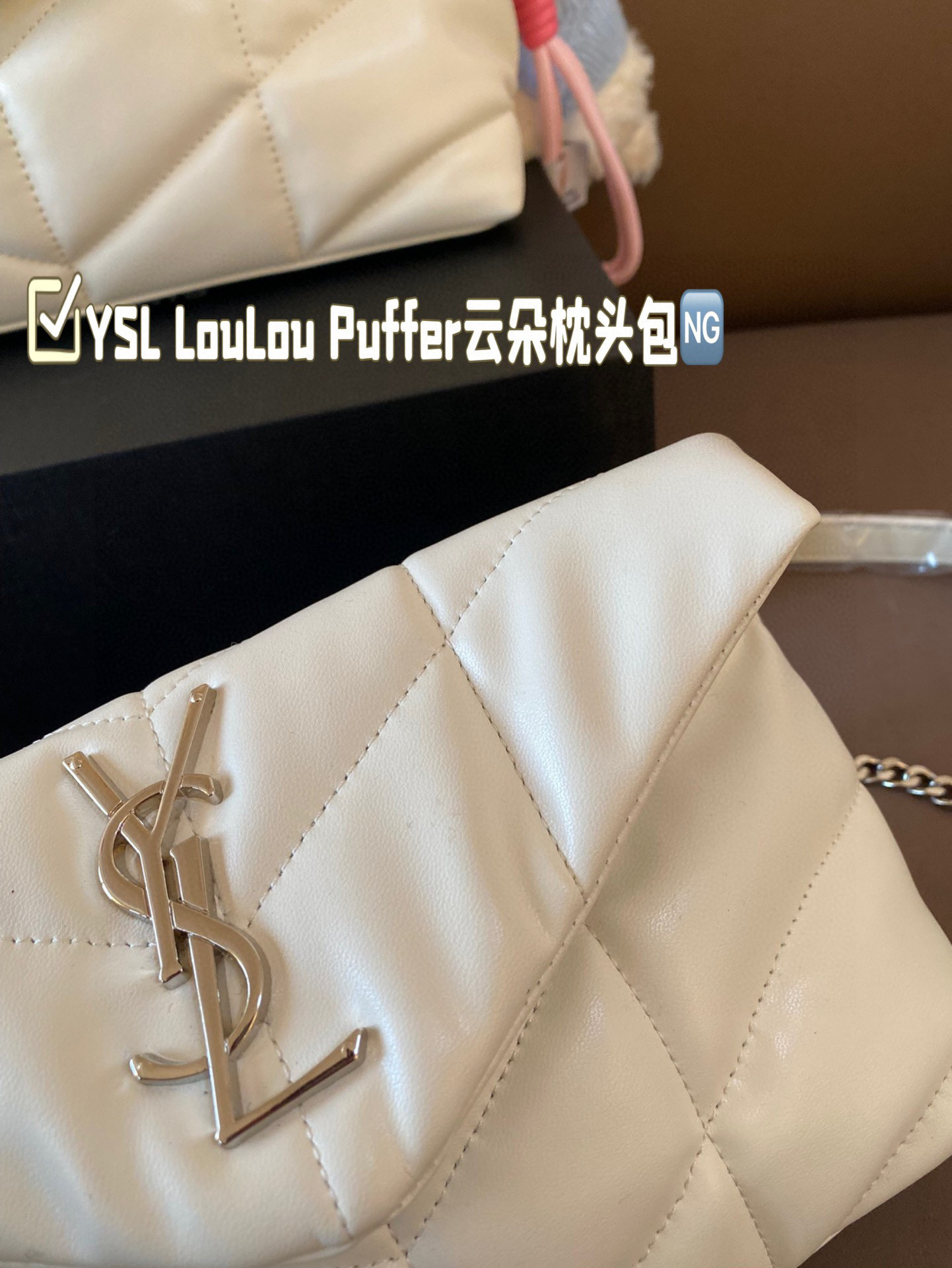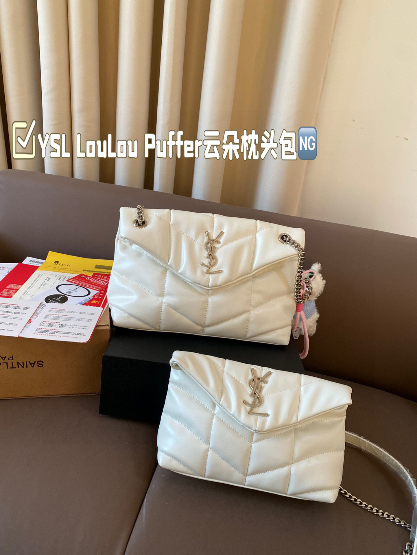 💰365/💰355 带挂件 配礼盒🎁. YSL LouLou 💰uffer云朵枕头包 loulou今年专柜超火爆 柔软舒适胖乎乎的外形像拿着棉花糖颜值很高的一款呀! 实用性满分+复古范十足怎么搭配都好看又百搭自圣罗兰 尺寸大号28*18/小号23*14