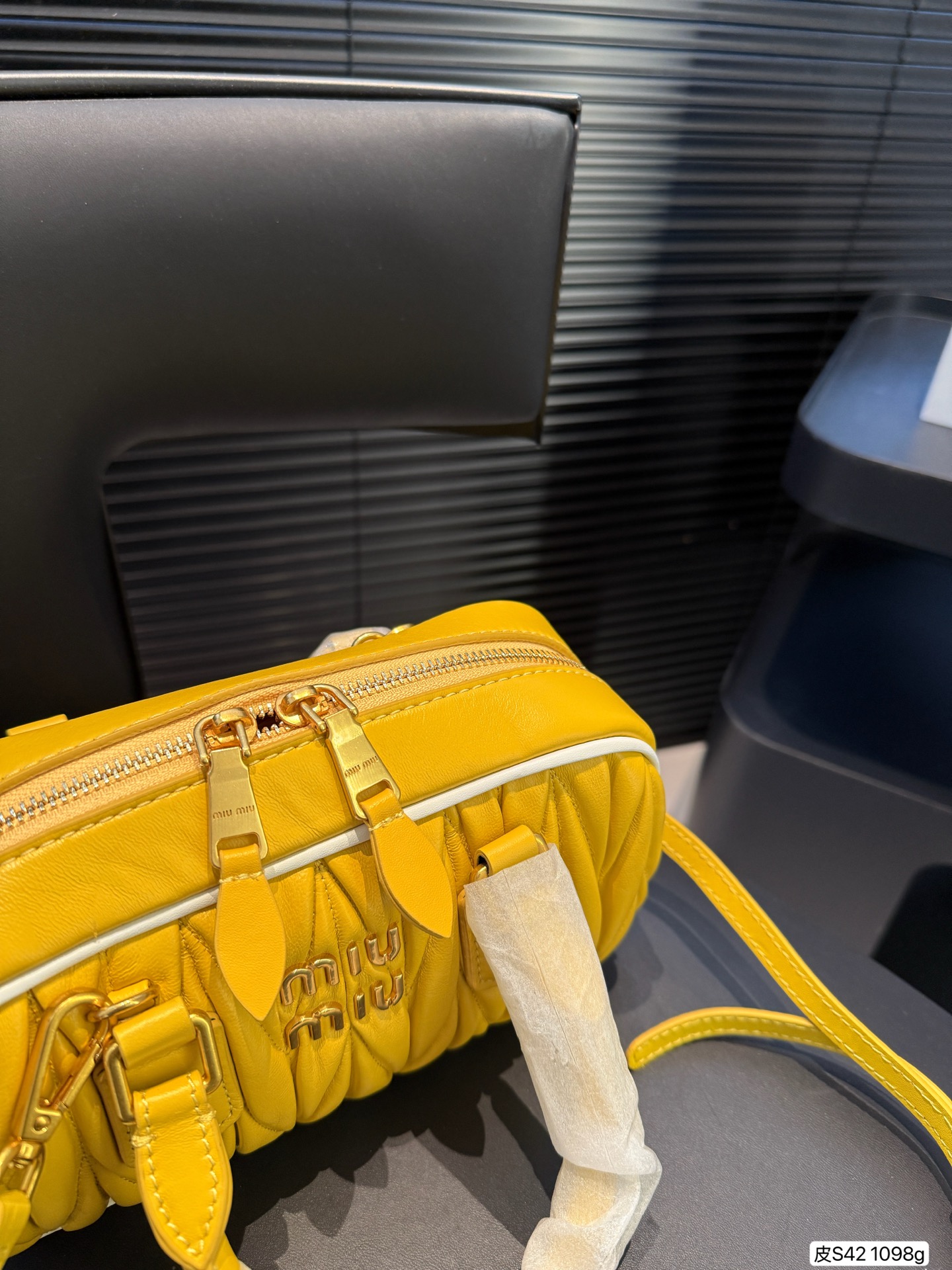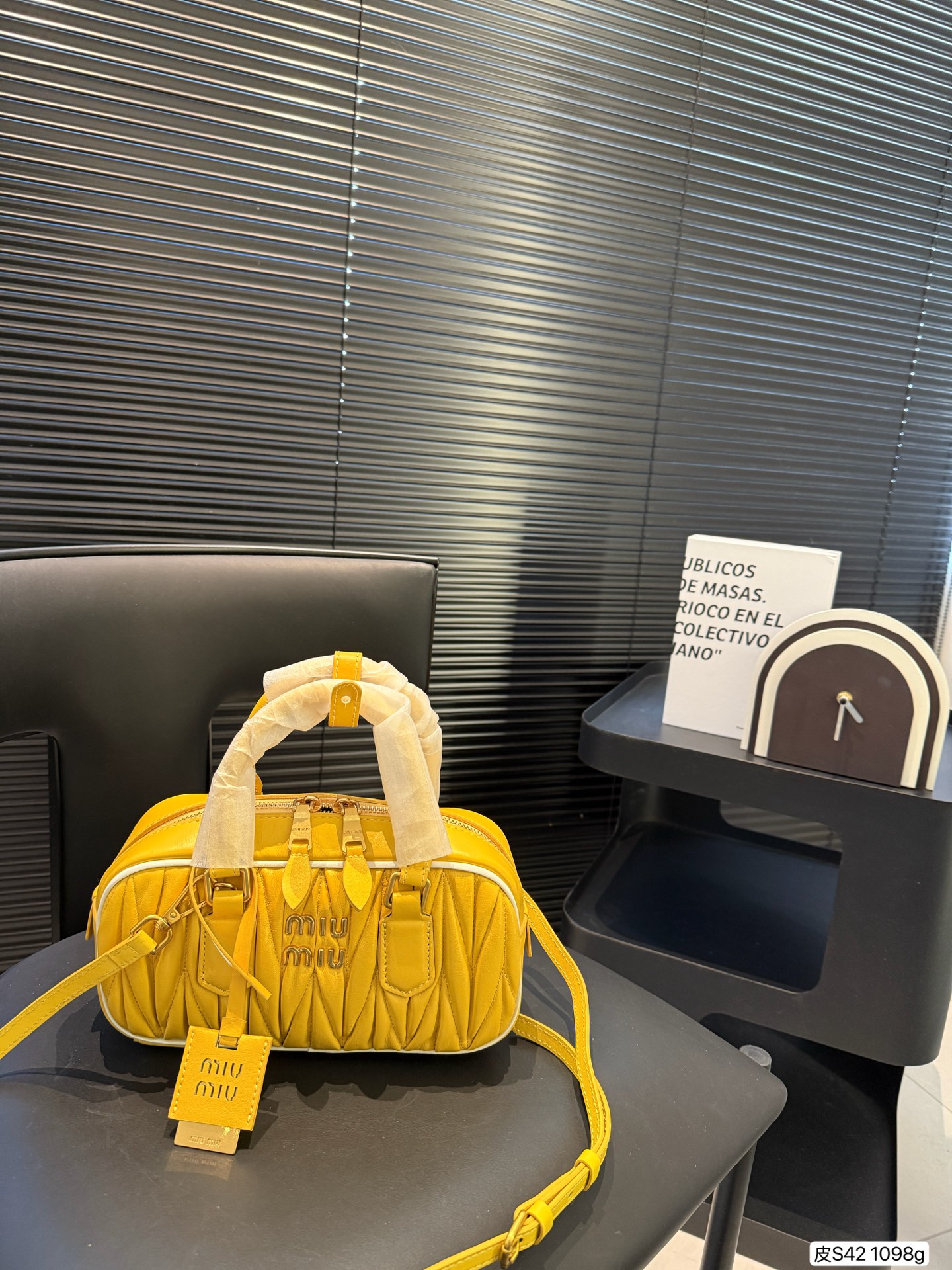 💰510 纯皮缪缪MIUMIU 保龄球手提包 轻轻松松高级感 包包手感巨好容量也很不赖 简单却又不失华丽 不要觉得会炸眼太高调了什么的 根本不会! 在你的精简穿搭上简直就是点睛之笔 尺寸:24 12 货号1098