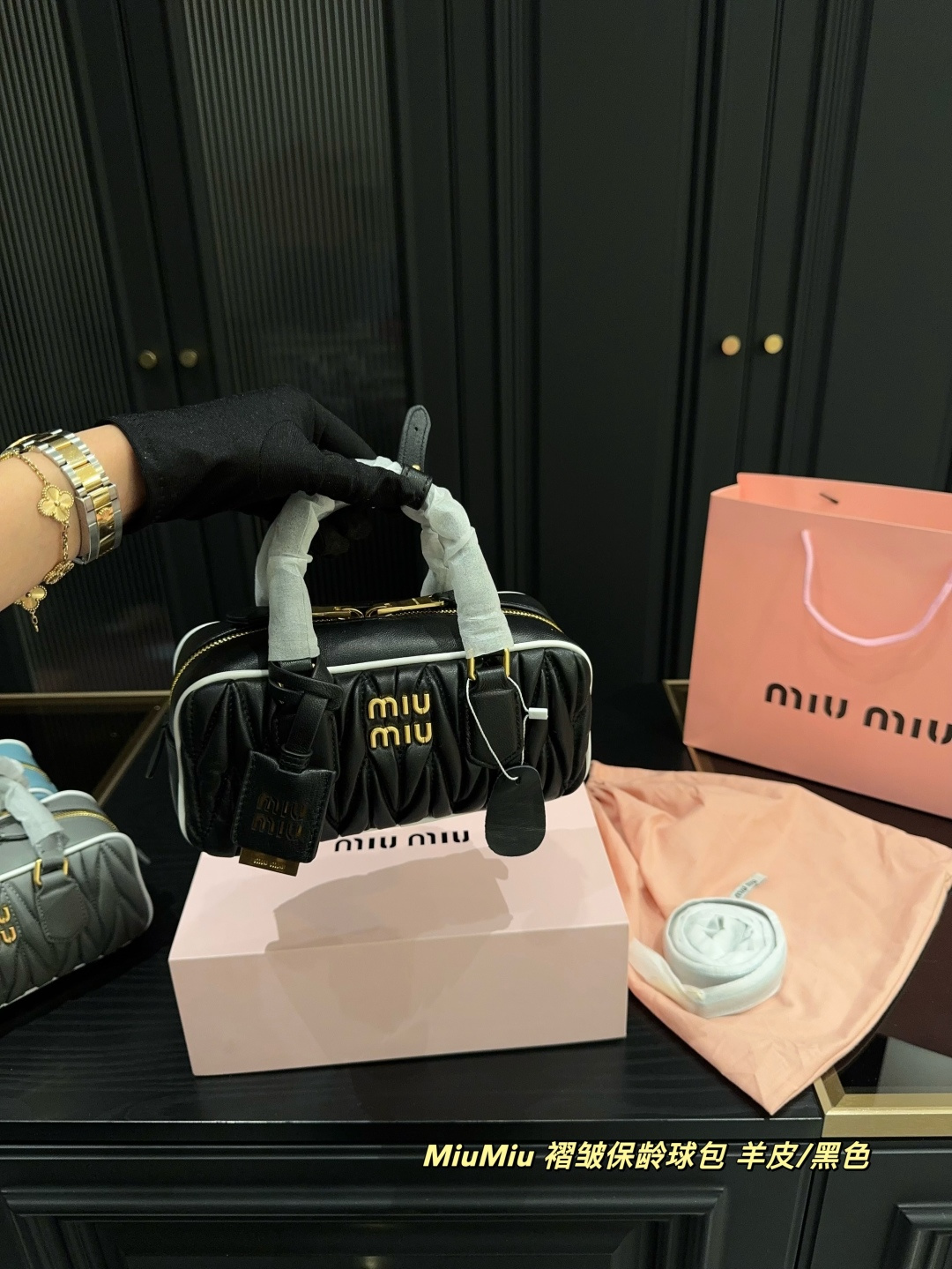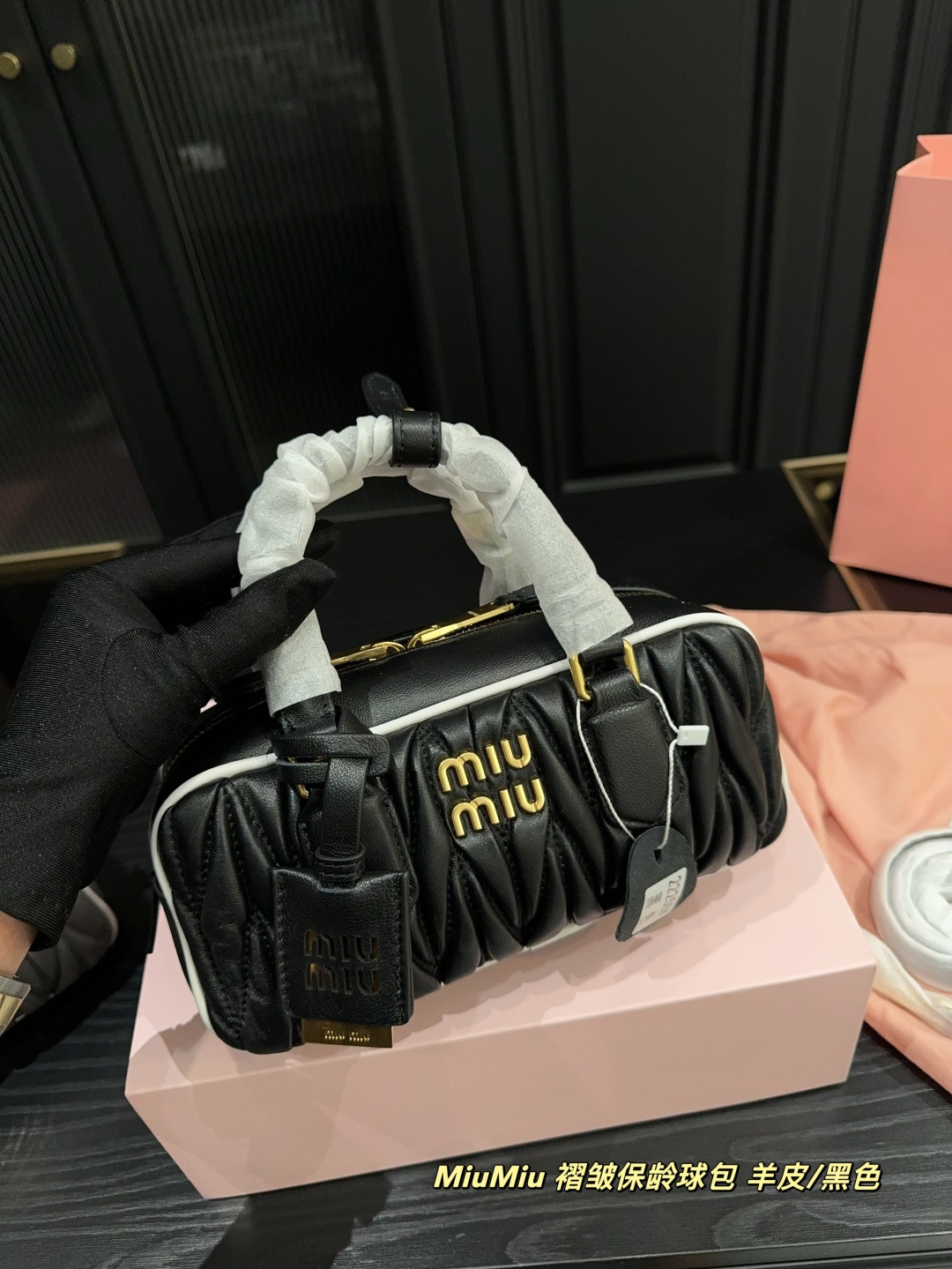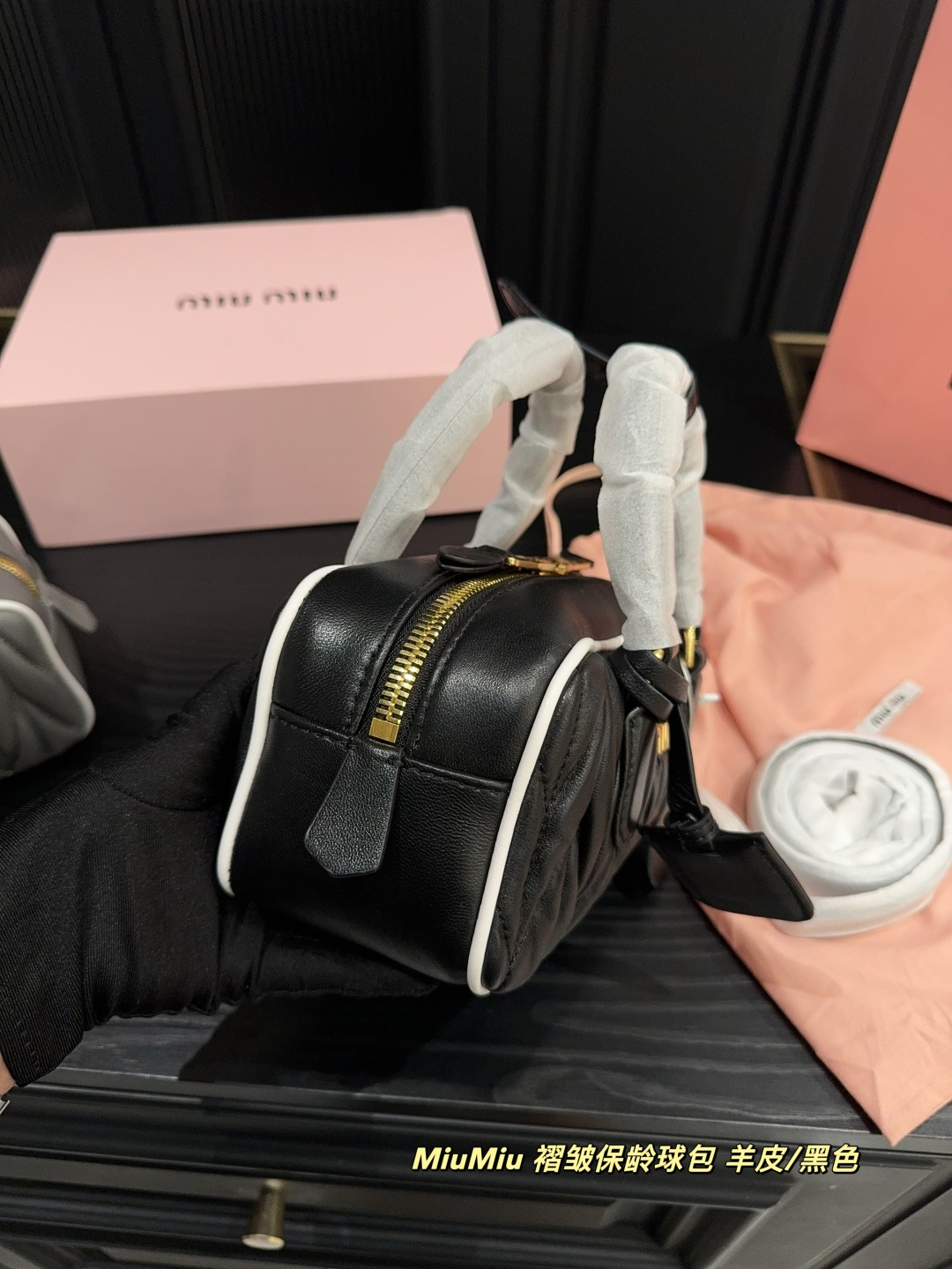 ✅羊皮💰500折叠盒⚠️尺寸23.10 MiuMiu 褶皱保龄球包
