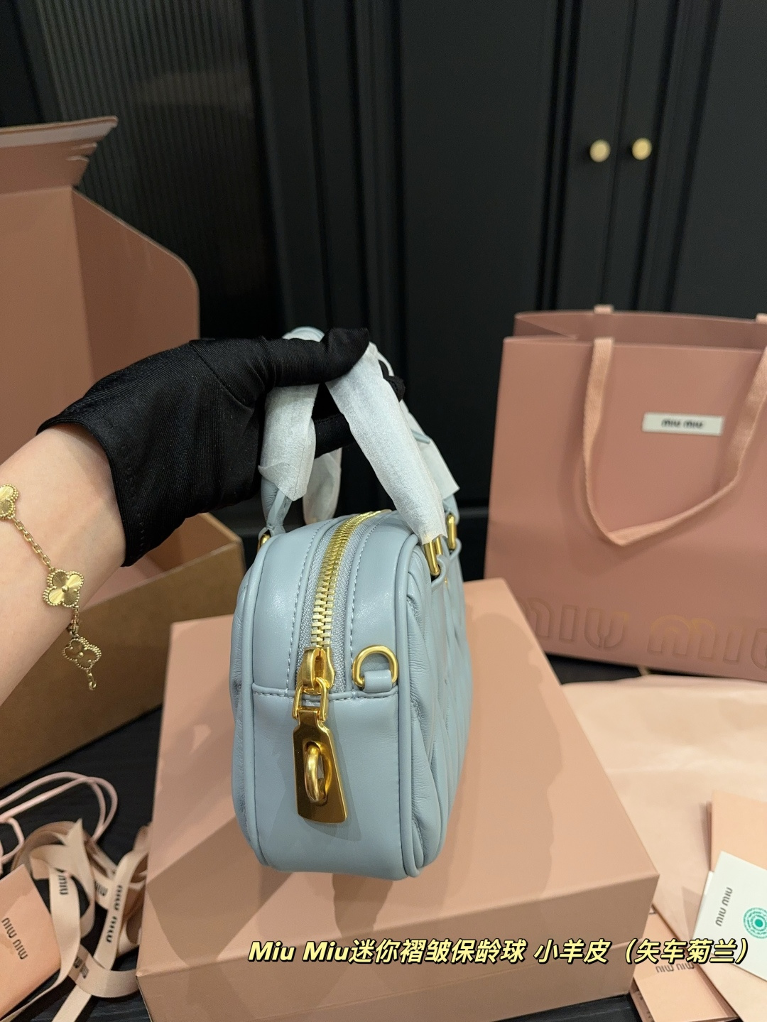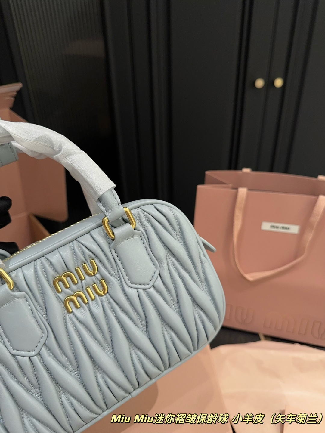 ✅高品小羊皮💰450全套包装⚠️尺寸20.13 MiuMiu 迷你锁头褶皱保龄球