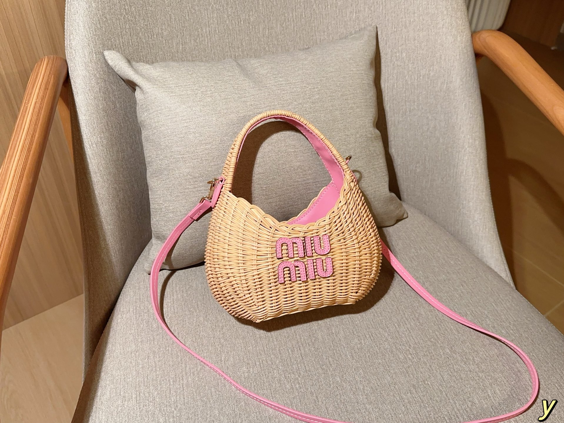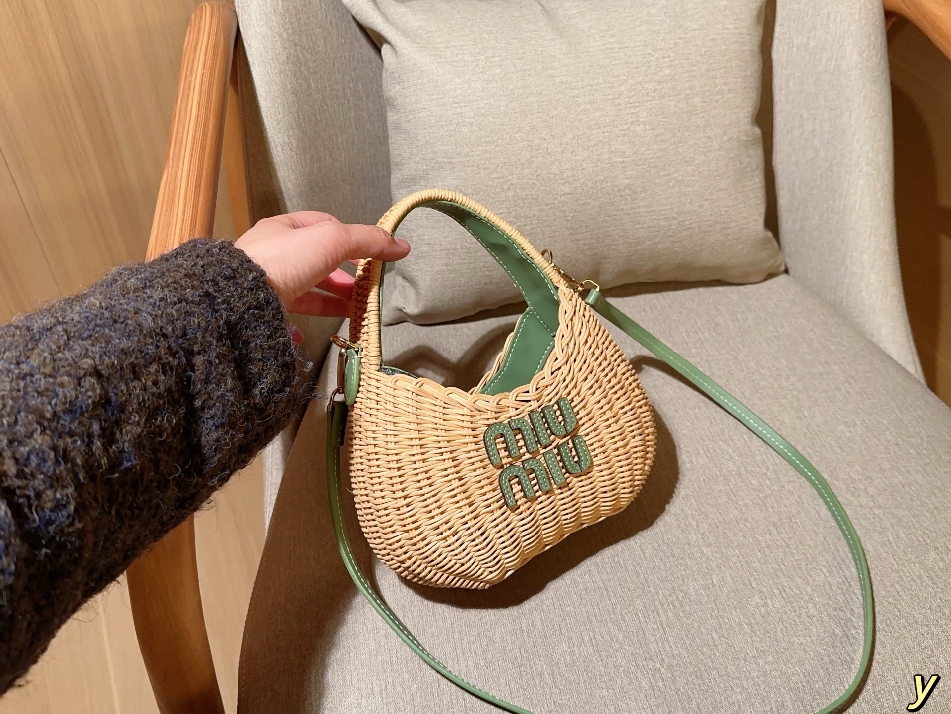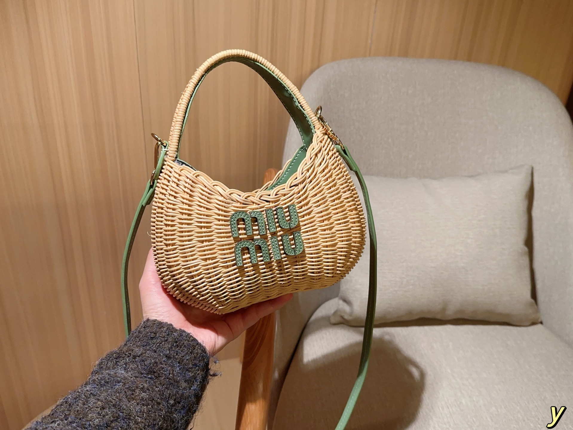 💰385 miumiu/缪缪 新款草编包Basket Bag 菜篮子 编织拼皮沙滩度假⛱️手提包/斜挎包 尺寸:20×15×7 礼盒包装🎁