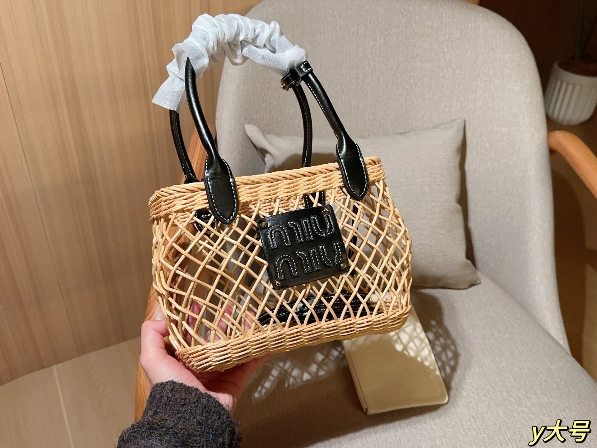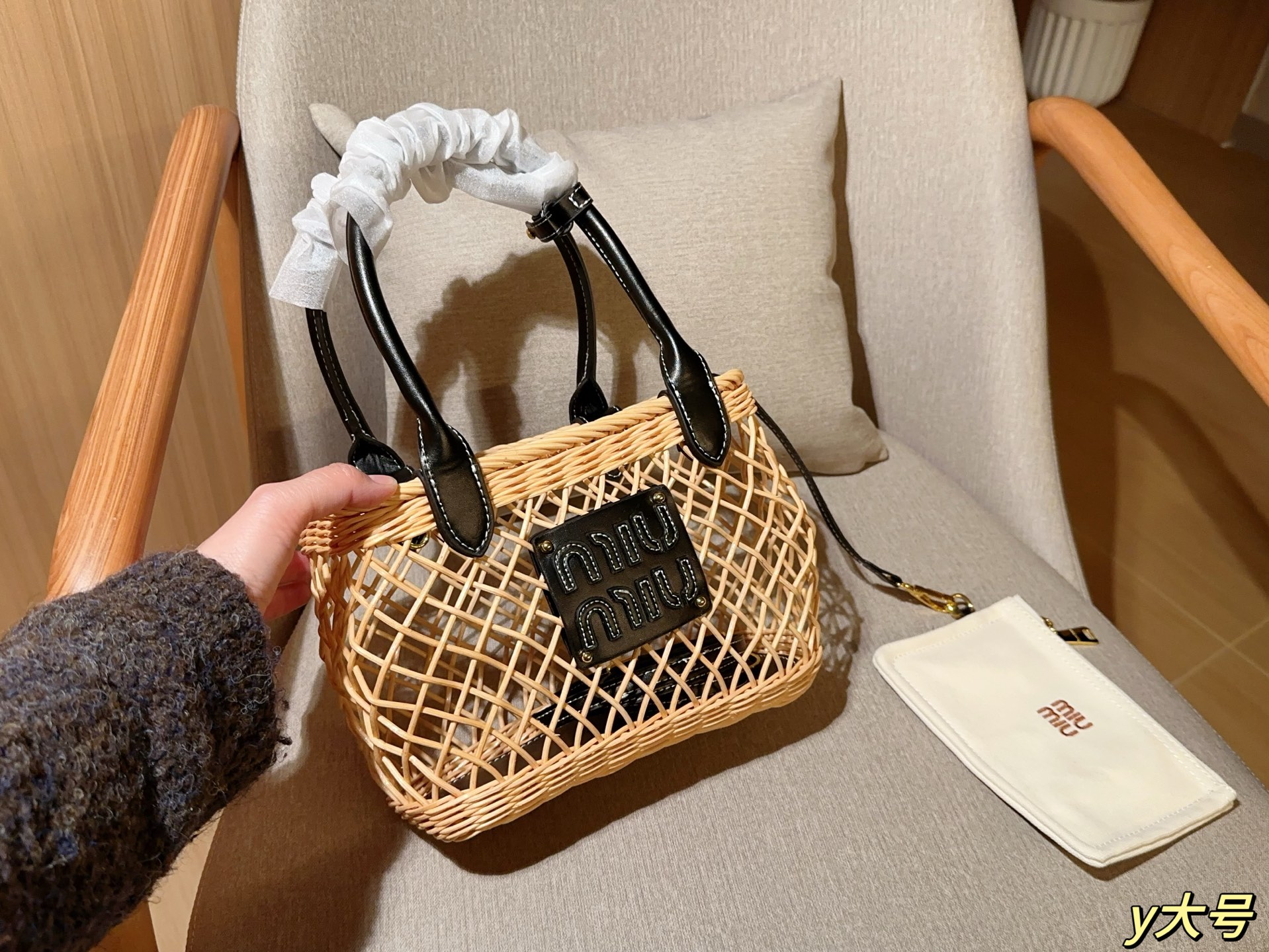 💰430 大号 miumiu/缪缪 25ss 竹编菜篮子 藤编小篮子 镂空编织包 尺寸:22×17×9 礼盒包装🎁