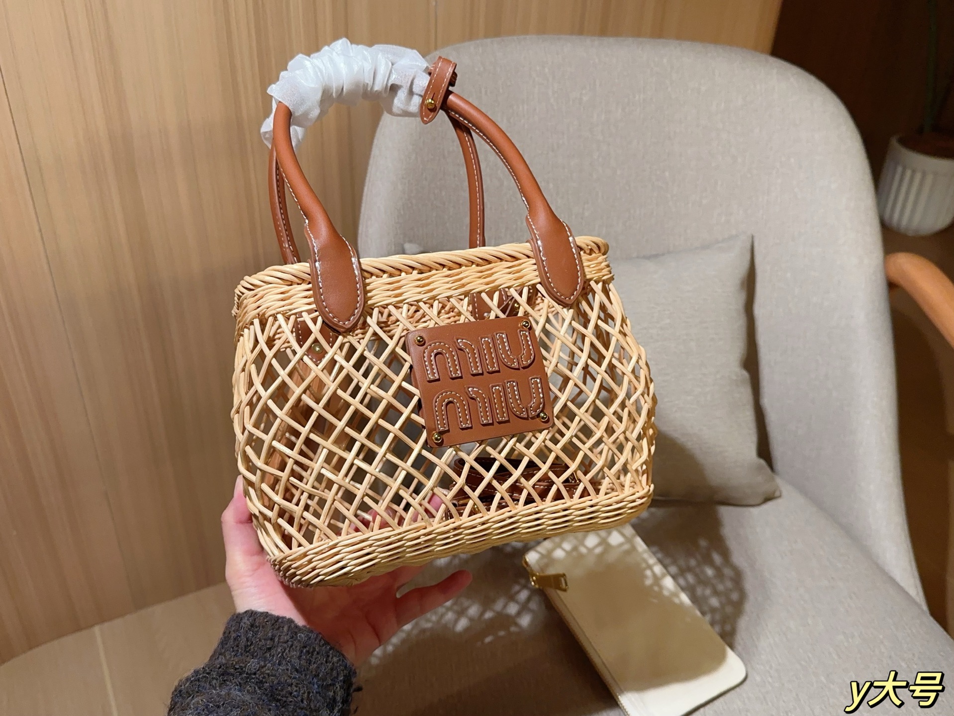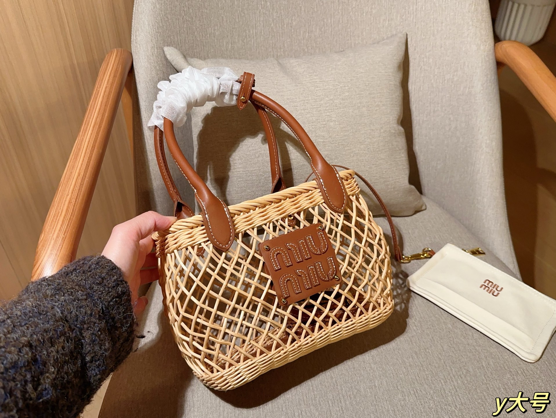 💰430 大号 miumiu/缪缪 25ss 竹编菜篮子 藤编小篮子 镂空编织包 尺寸:22×17×9 礼盒包装🎁