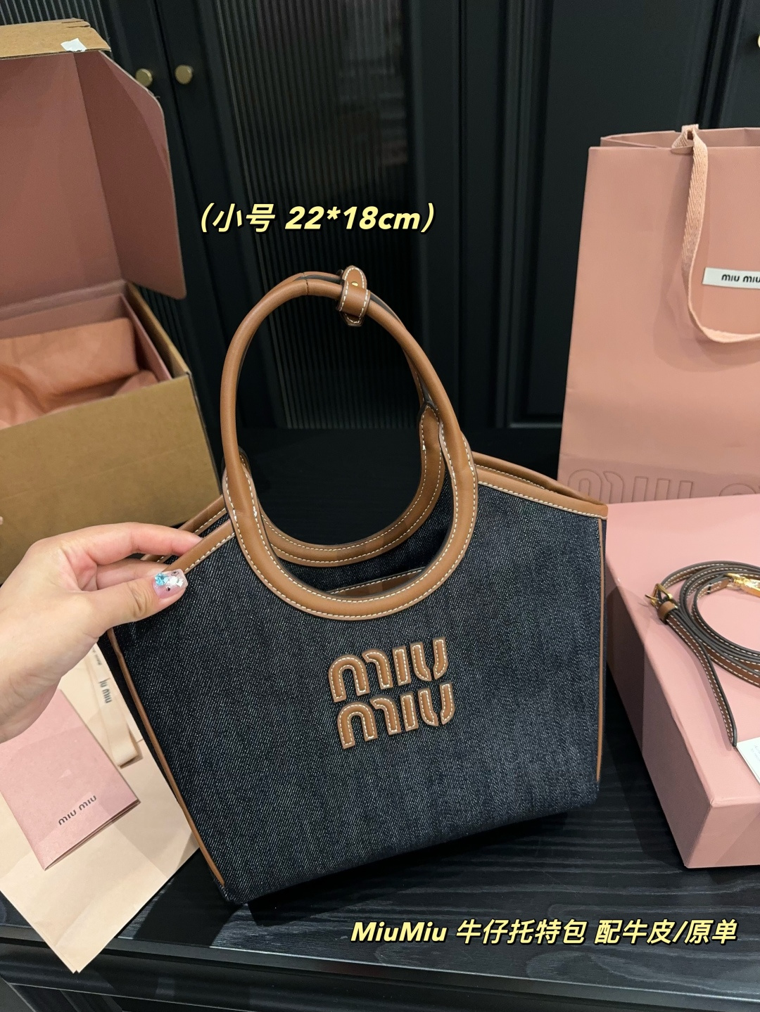 💰490全套包装⚠️尺寸22.18 MiuMiu 牛仔托特包