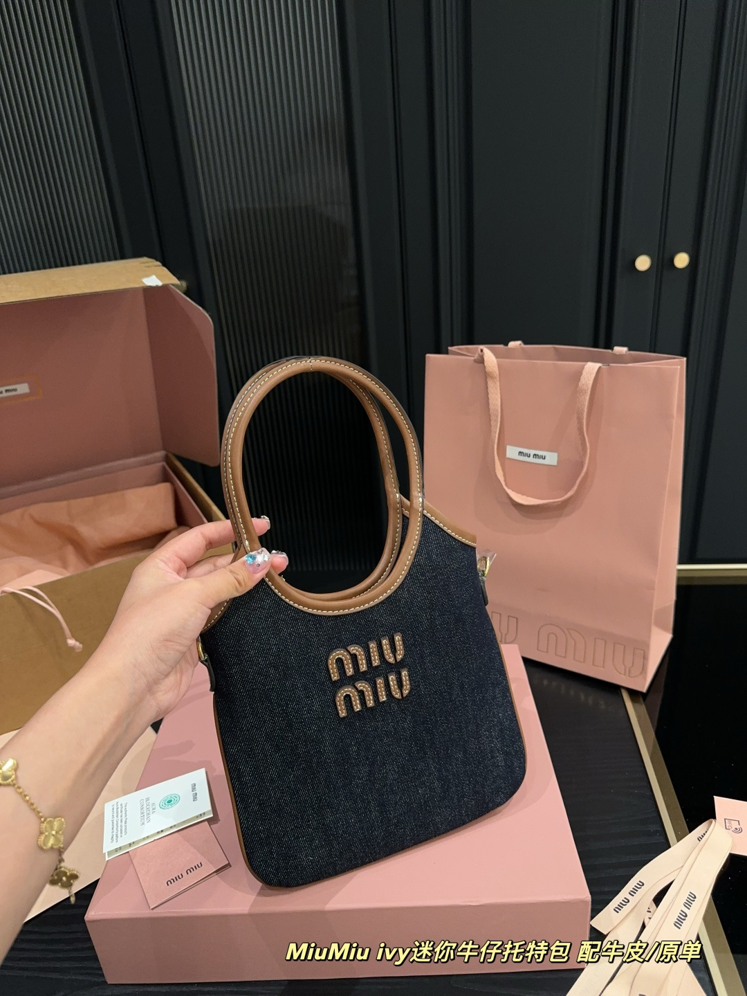 💰420全套包装⚠️尺寸21.20 MiuMiu ivy 迷你牛仔托特包