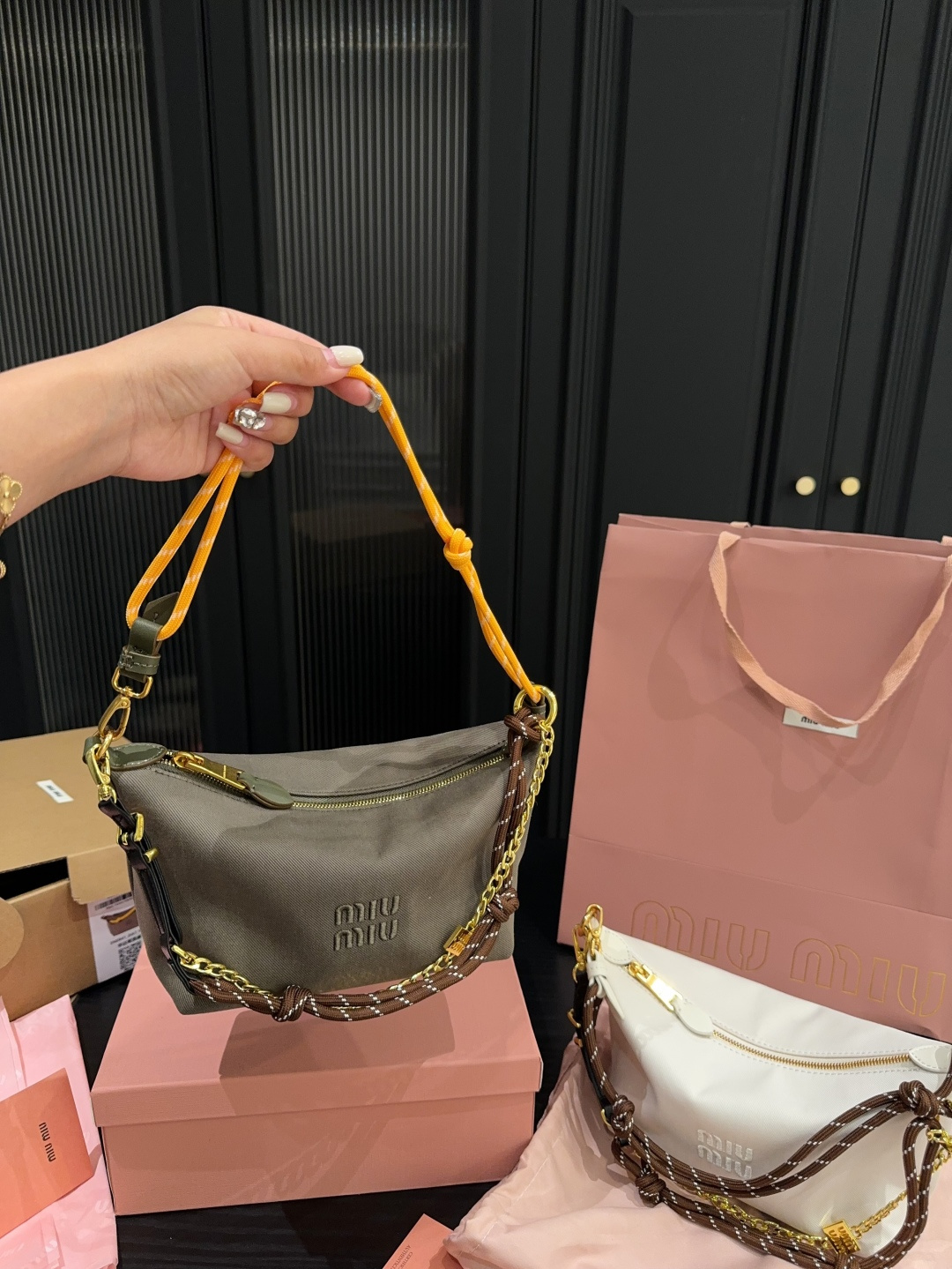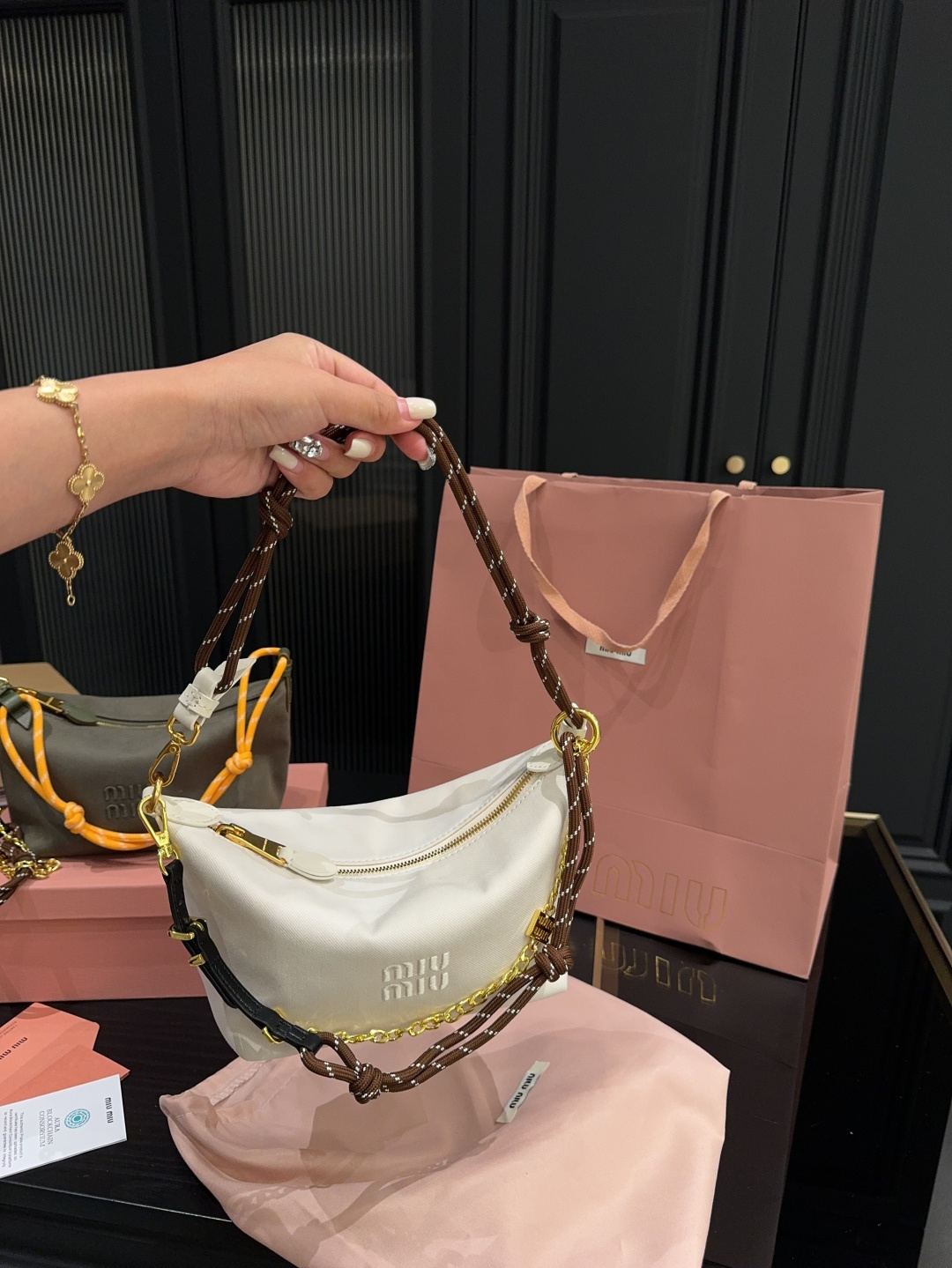 💰360全套包装⚠️尺寸18.14 miumiu 帆布饭盒包 绳结Hobo