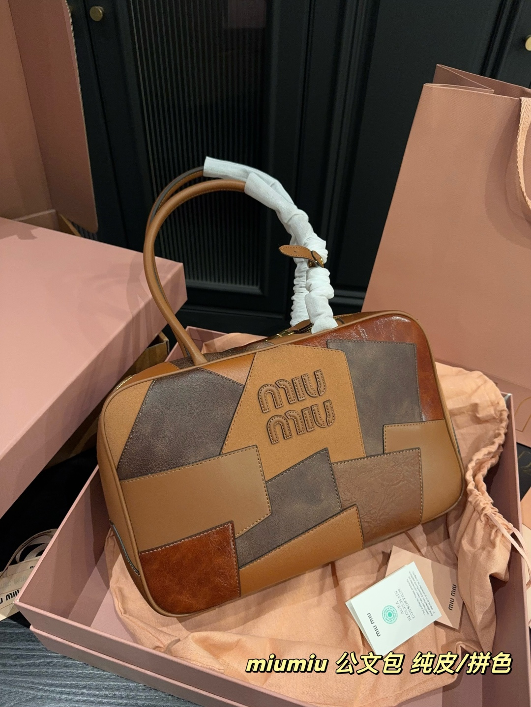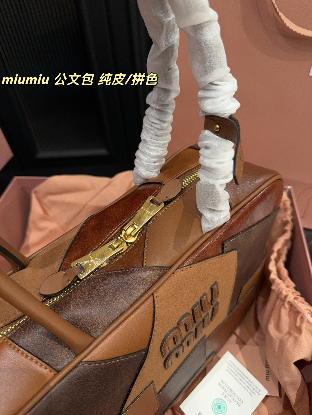 ✅纯皮💰590 全套包装⚠️尺寸34.22 miumiu 拼色公文包 完美复刻版 无敌品质