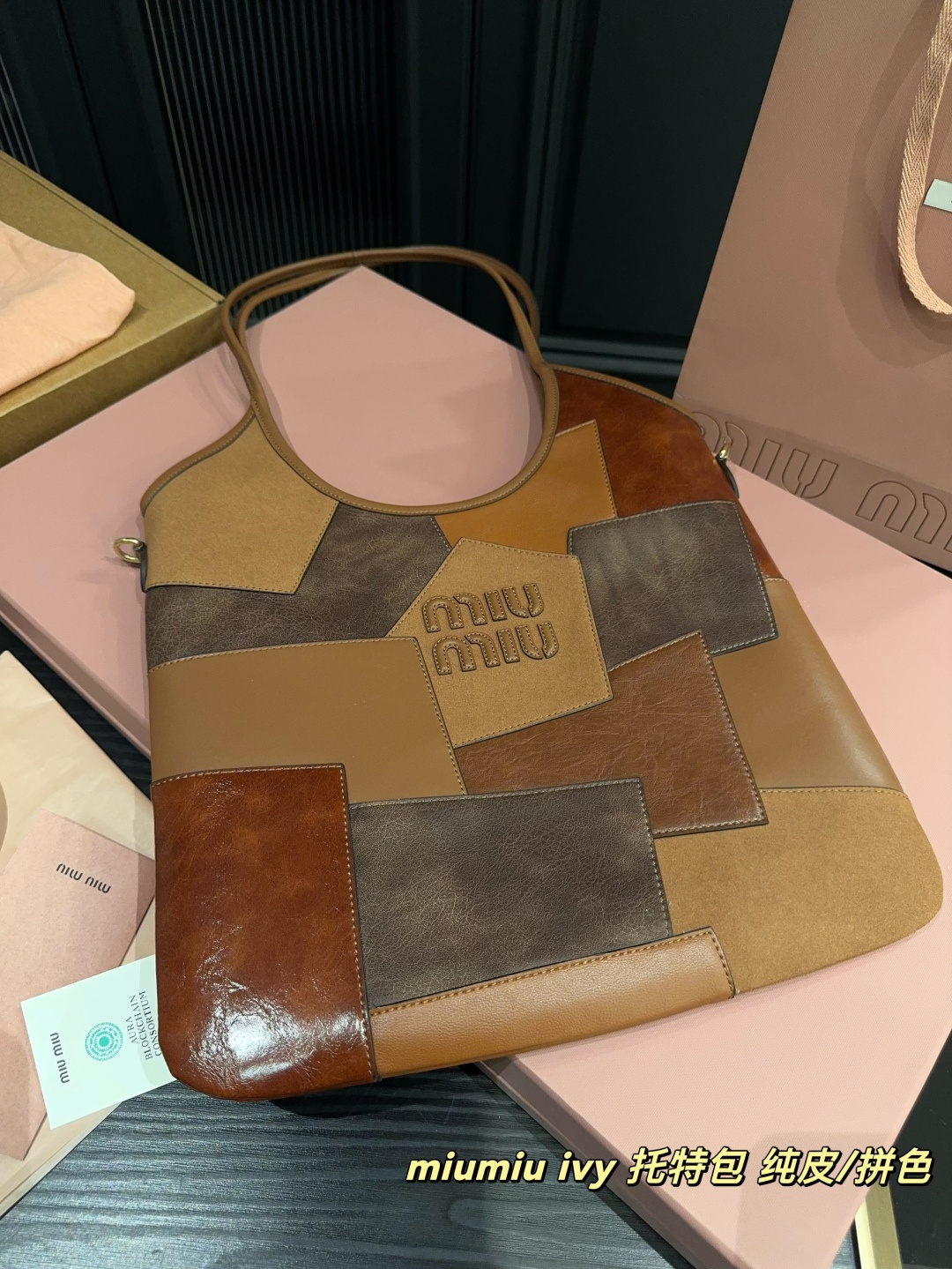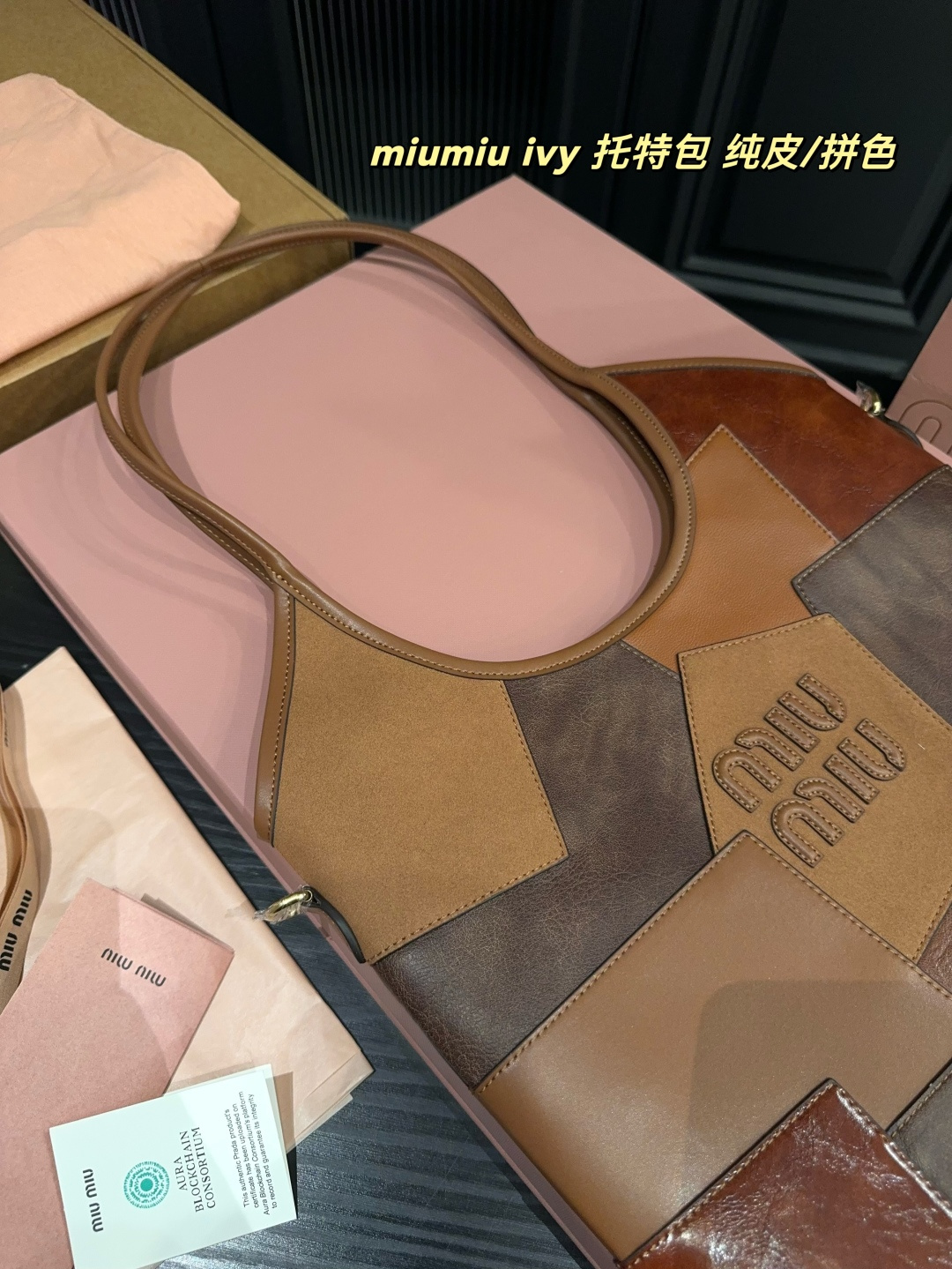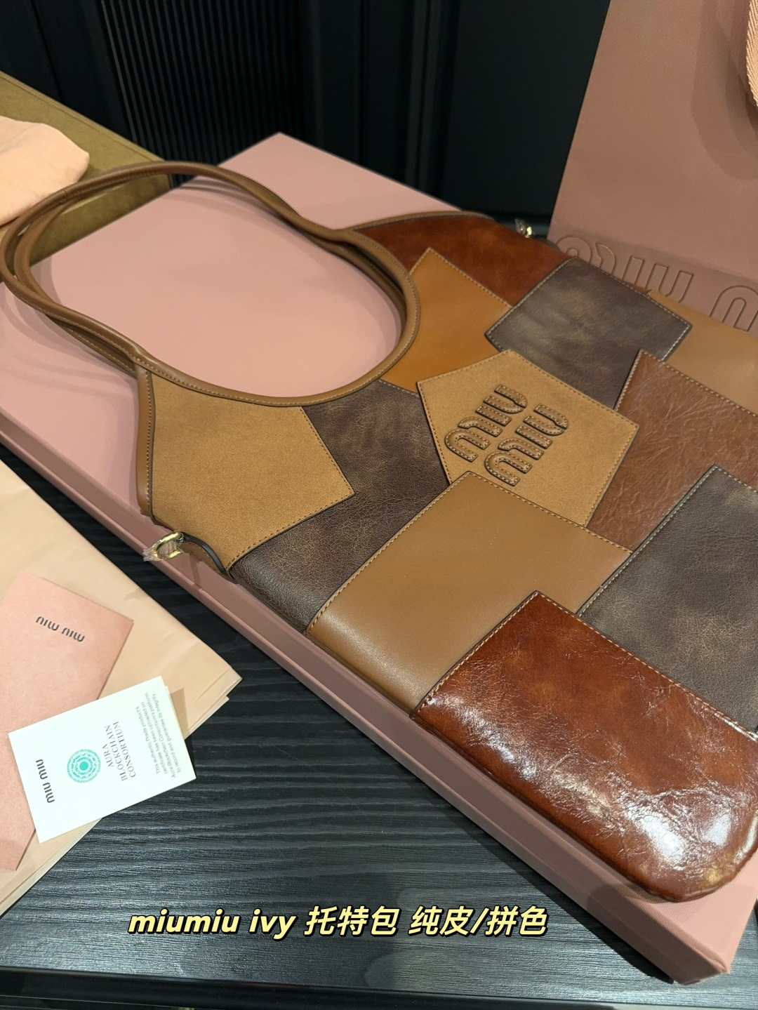 ✅纯皮💰510 全套包装⚠️尺寸35.34 miumiu ivy 拼色托特包 完美复刻版 无敌品质