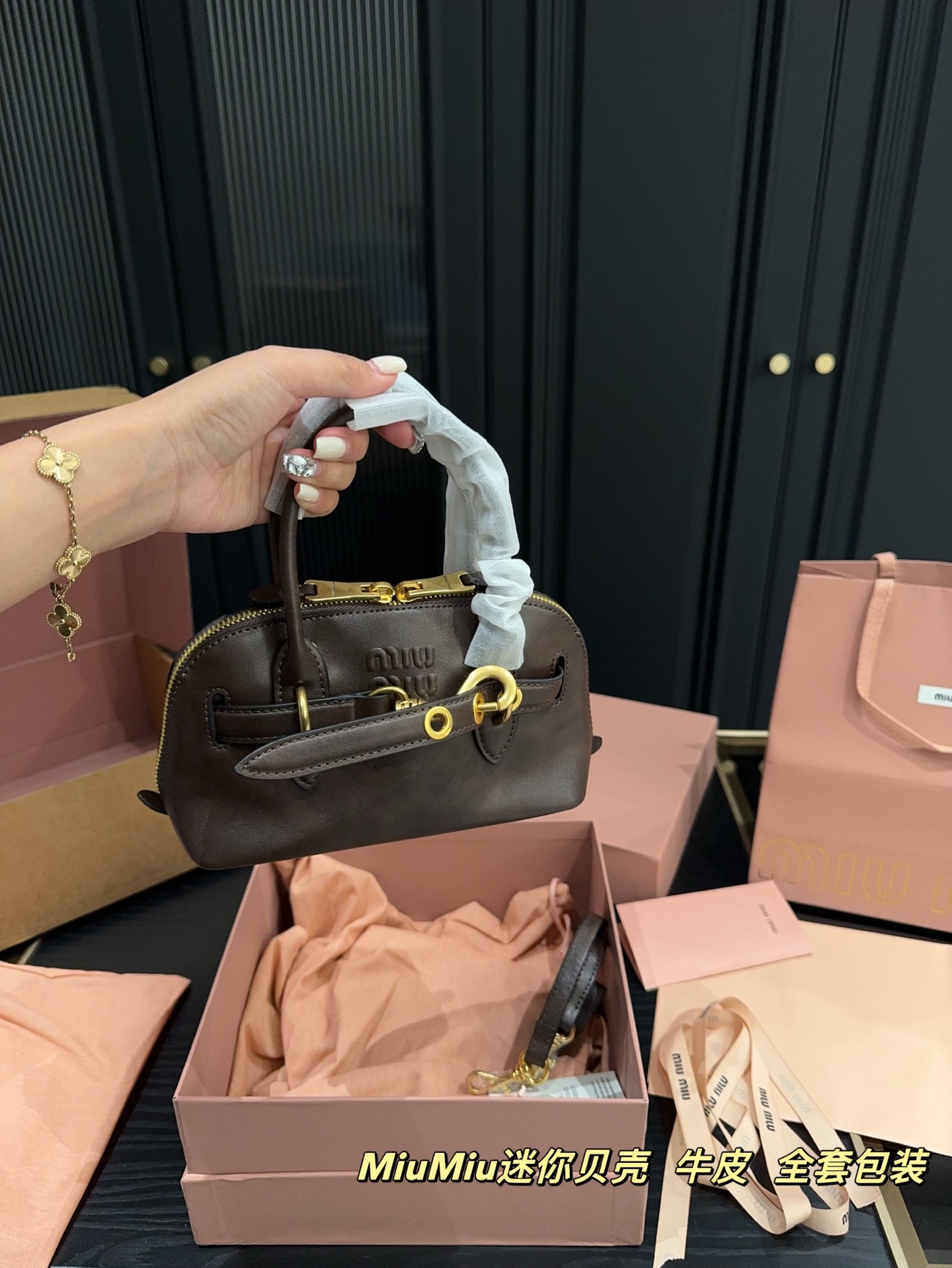 ✅头层牛皮💰510全套包装⚠️尺寸20.12 miumiu 迷你贝壳包 秋日梅拉德色系还是得靠这只了,超级难买的颜色❗️❗️❗️人气爆款,被咖色贝壳拿捏的秋天🍂