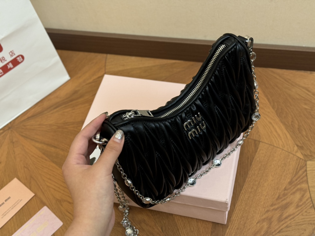 💰330 配盒 size:24*19cm miumiu 法棍包包, 特别喜欢这个宽肩带的设计! miumiu的坑真的好仙女好好看! 真的很有质感! 可斜挎可手拿可单肩, 日常约会出行简单好搭配。