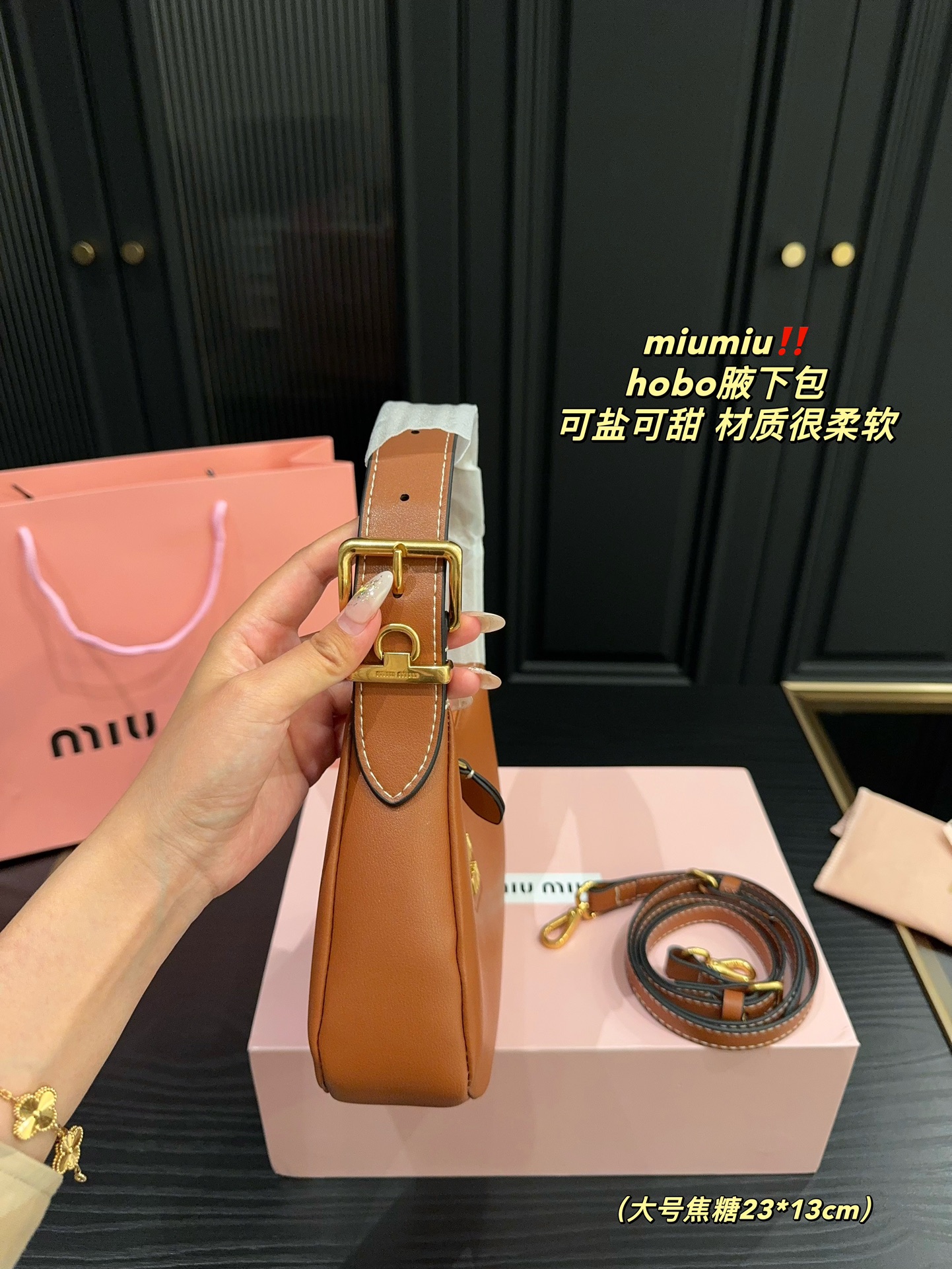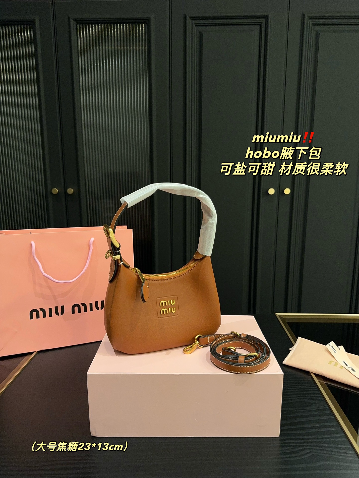 大号💰380折叠盒⚠️尺寸23.13 小号💰360折叠盒⚠️尺寸19.15 miumiu hobo腋下包 24新款Hobo,太好搭配了! 能拎、能挽、能肩背(有肩带),可咸、可甜、一包在手,AC无忧~