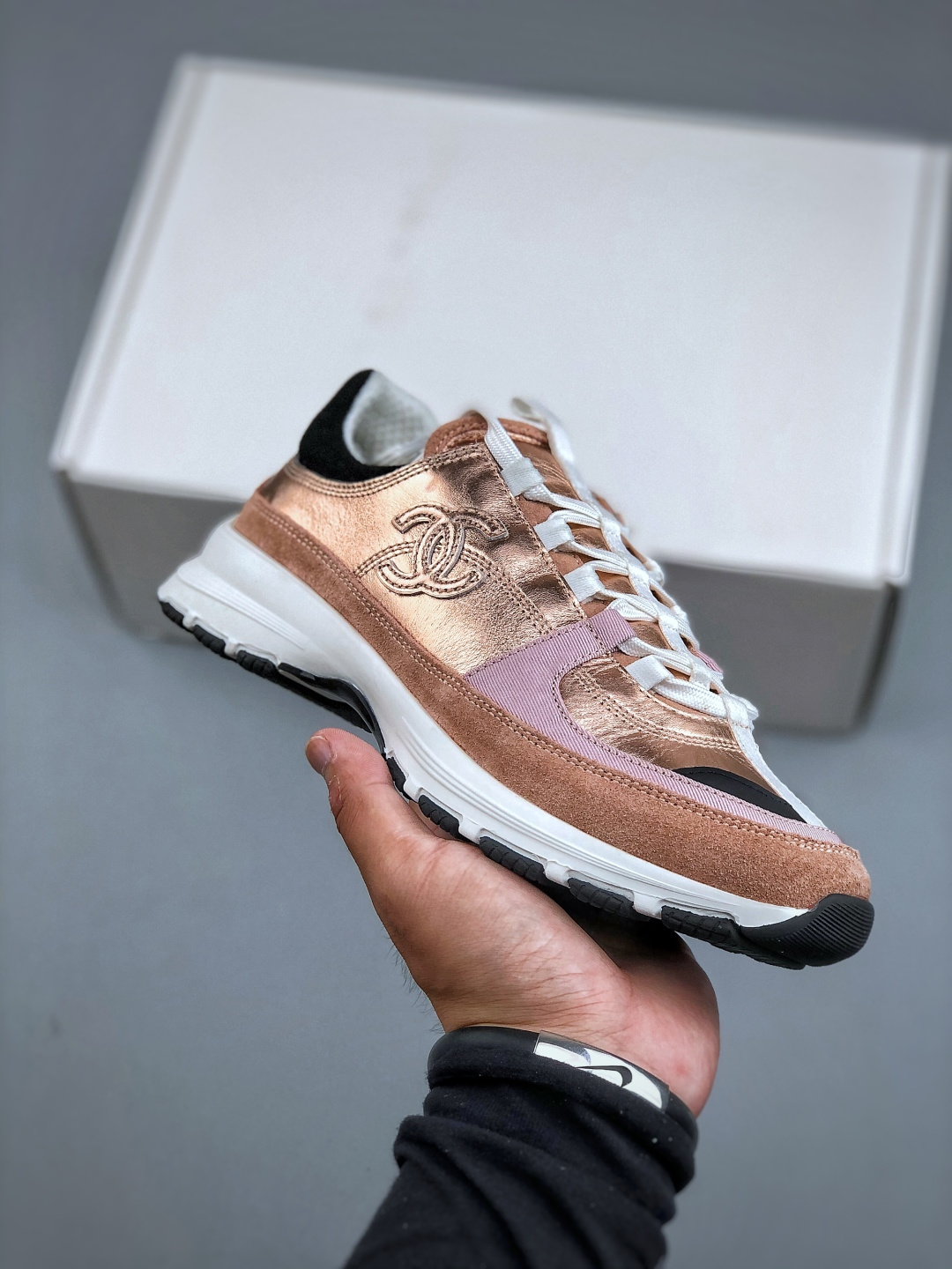 纯原💰560 Chanel香奈儿 25ss 春夏新款专柜顶级休闲款运动鞋 这款经典设计 鞋面多种工艺电绣的风格;大底却时尚运动;不平凡的拥入了多种配色元素多元化混搭非常好看百搭,休闲,时尚,运动,户外都能兼顾 鞋面采用: 原版进口高丝光牛反绒+进口混种羊皮 内里采用: 原版进口透气网 大底:原版独家开模+TPU组合大底 尺码:35-40