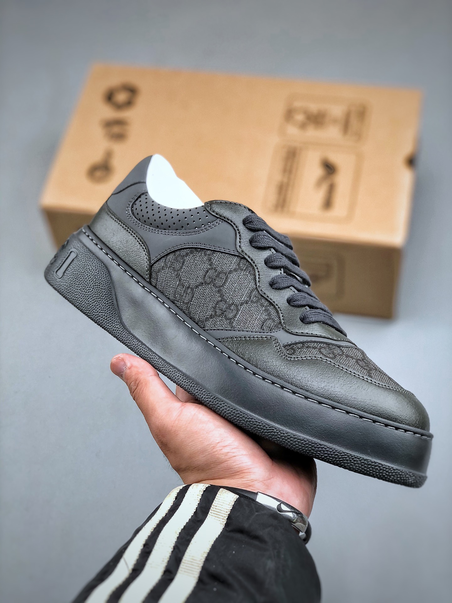 💰380 Gucci Screener GG High-Top Sneaker古驰饼干鞋 运动休闲鞋系列#全套专柜包装物及配件 这款运动鞋采用厚底结构,巧妙运用外观设计、配色和材质三重元素,展现出复古风范。别致的橡胶鞋底,搭配米色和乌木色经典GG帆布鞋身及同色调皮革滚边,突显时尚大气的品味。意大利进口超软小牛皮 同源出厂真丝绸防尘鞋套袋 原装ms雪梨形超软沙绒纸团 鞋底采用超软橡胶大底内外锁死工艺 最大限度弯折永不开胶,原鞋一致效果环保无味