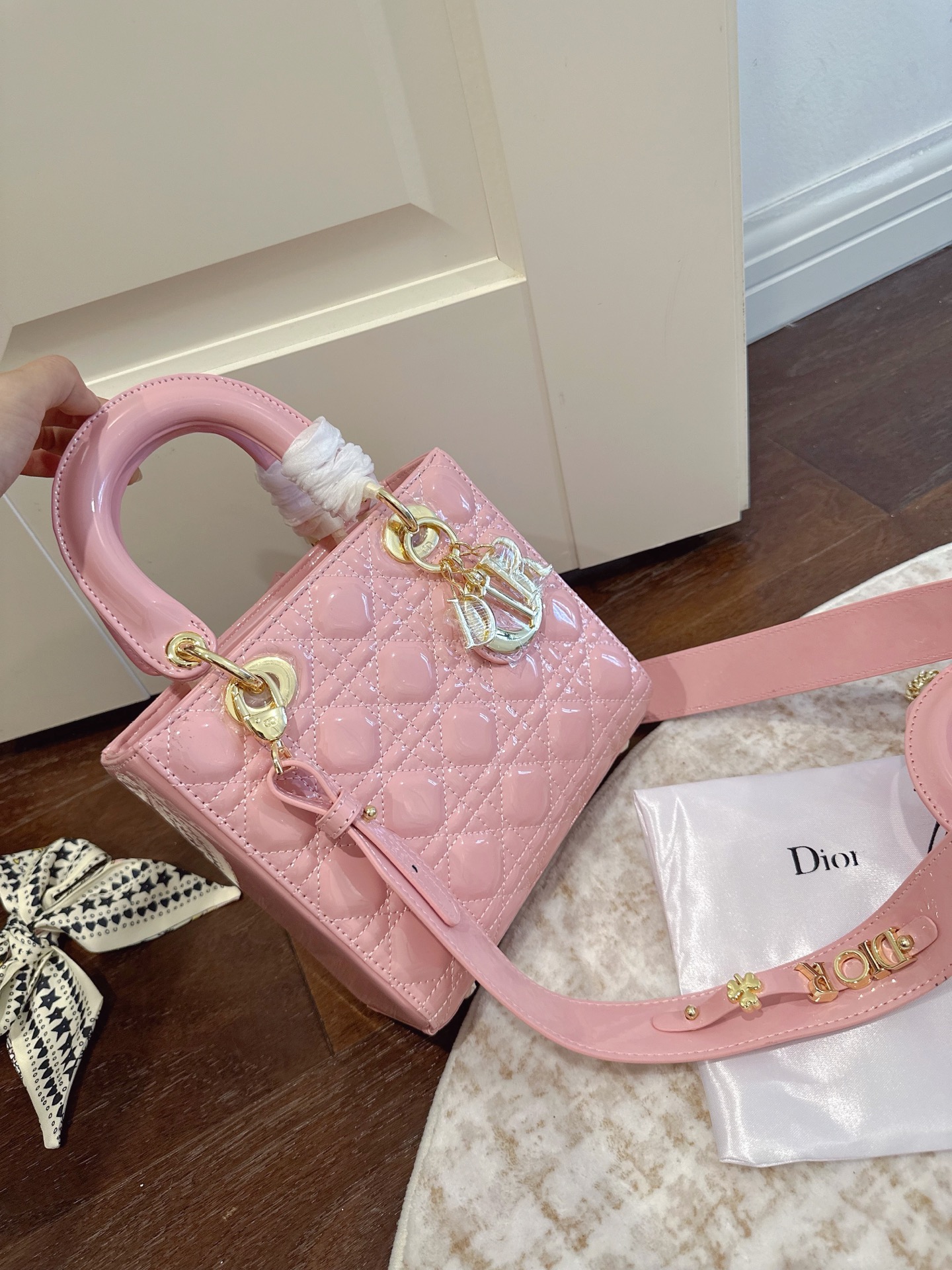💰320 送丝巾 这叠礼盒包装 迪奥Dior 经典漆皮系列 3格搭配两条肩带 4格搭配字母宽肩带 戴妃包高端品质 原版皮 可随意对比专柜细节 独家出货 高版本第一批 实拍图一组 我们的版本看实拍 good lucky 人手必备的戴妃经典 最新哑光五金超洋气,尺寸:三格17cm 四格20cm