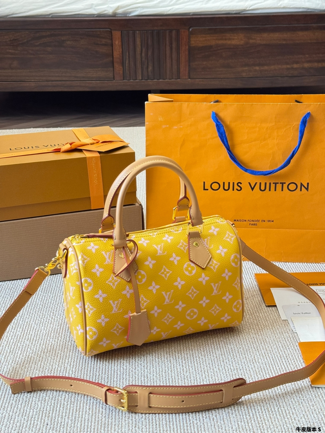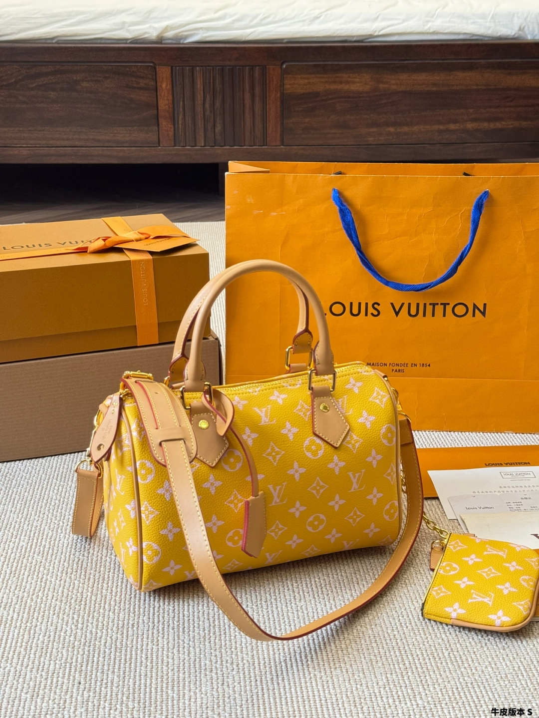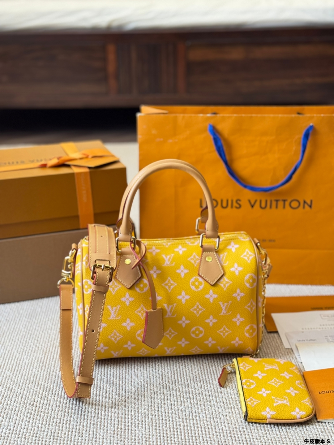 牛皮版本 💰420 LV Speedy 大小真的很合适 可以装水瓶装书装ipadmini 帮大家配过挂件了,和tiffany色系turquoise的蓝色都搭。和达菲系列的匹配度还行 港迪21冬日olu蓝毛球应该是最搭的 配件有肩带、行李牌、锁头、钥匙、一个链条小钱包、包撑,长期不用的时候包撑可以放在里面定型(但是我感觉软软塌塌比较好看 很松弛 尺寸 25 20cm