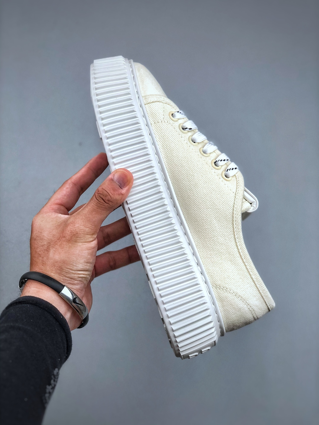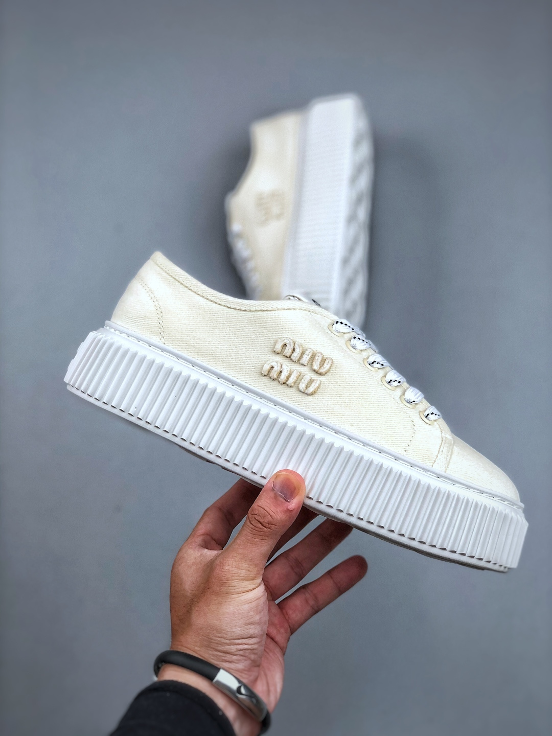 💰460 新款上架心缪缪miumiu2025ss春夏主打最新 款松糕厚底休闲小白鞋帆布鞋、包头半拖饼干鞋高级感十 足!国内外博主刷爆的一款官网主推款简约的格板设计, 鞋侧logo装饰和极具辨识度的鞋舌,上脚超级阳光青春! 鞋面采用进口高密度帆布,内里透气帆布,垫脚羊皮原 版开模橡胶大底底厚:约4.5cm 尺码:35-40