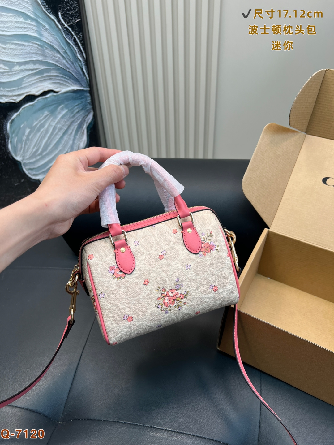 💰295 配礼盒 蔻驰COACHmini波士顿花卉枕头包美晕了!米色底搭配缤纷花朵,看到就挪不开眼睛啦 超级可爱!平时穿衣风格可爱一点的或者玩lolita的入手这个真的好合适! 小小一个很可爱 但是容量出乎意料的大!尺寸17.12cm