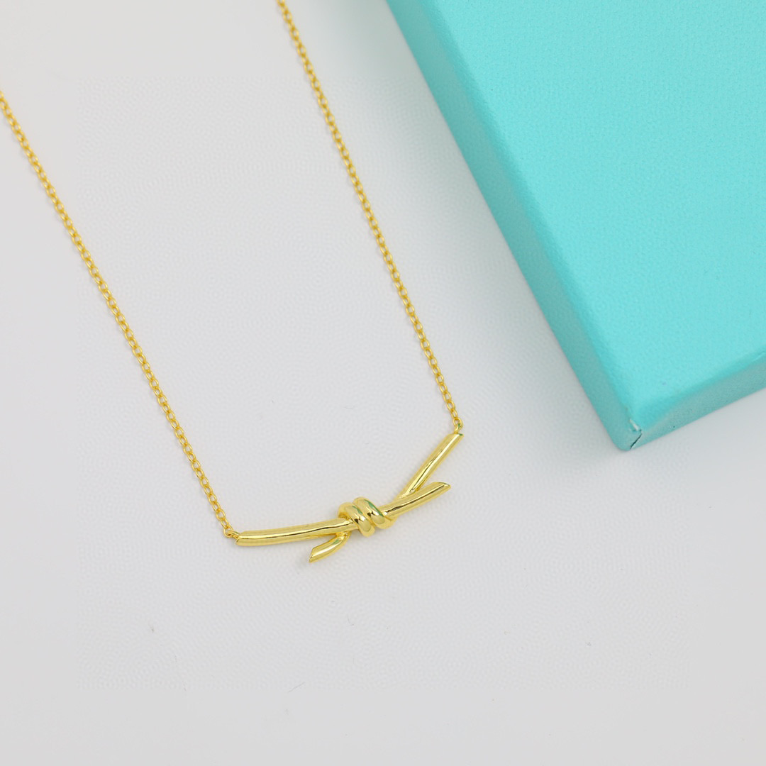 💰238 新款 Tiffany 绳结项链 光面款通体S925纯银材质 带原版logo 🎀美的窒息今年夏天最火爆新款 链子长45cm调节 蒂芙尼项链👼】电镀18k金 厚金电镀