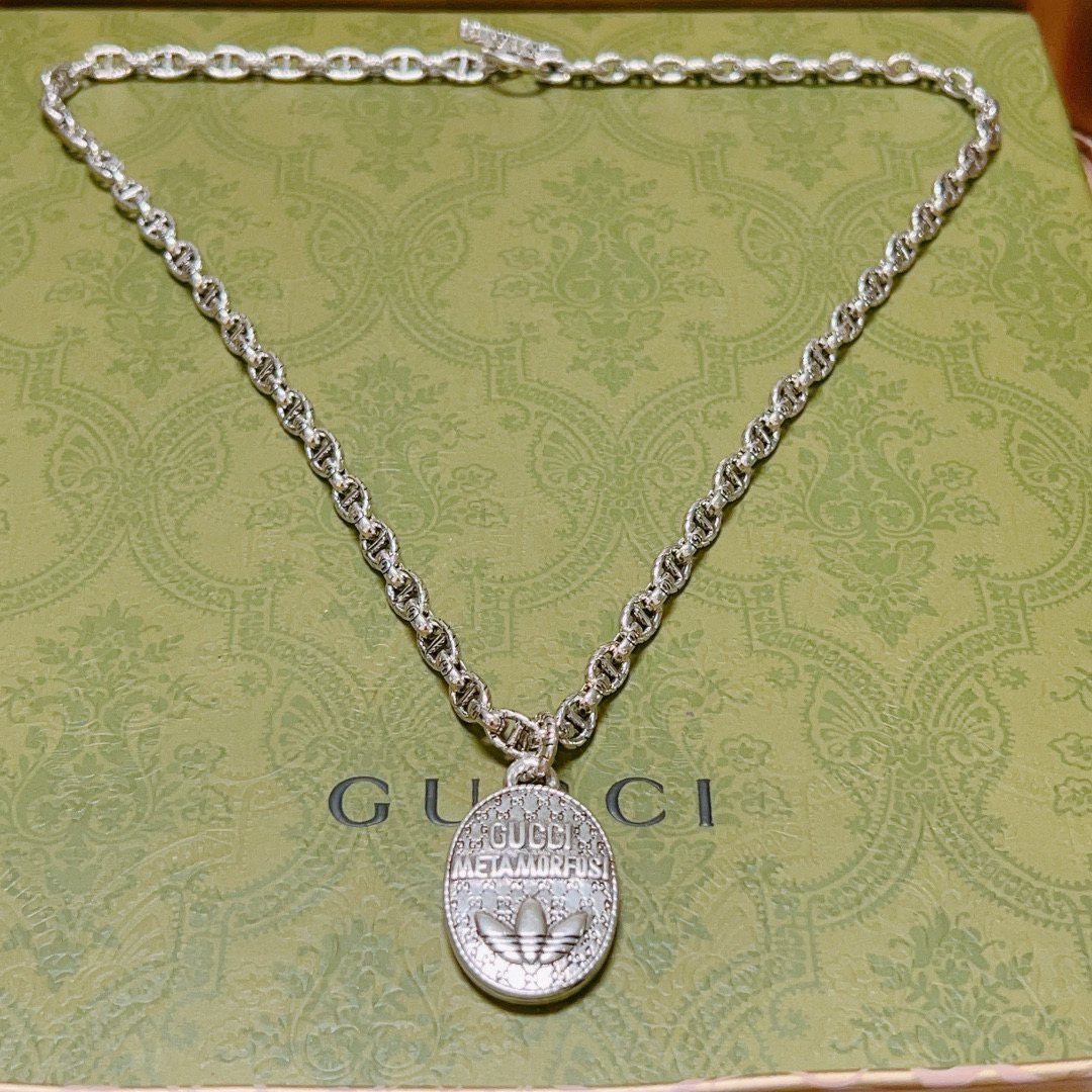 💰320 𝐆𝐮𝐜𝐜𝐢古驰项链最新款链条档次更高明星同款Anger Forest系列双G经典款三叶草联名设计理念项链系列复古银项链 链长60厘米可改长度 细节对版做旧处理 非市面亮面版型 这款一直在出 古驰里面热卖款 非常好搭配潮流衣服👔🥿