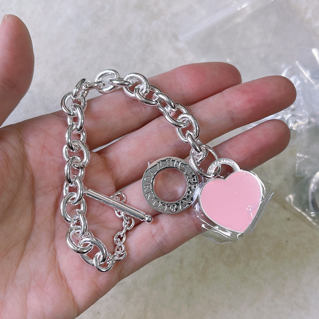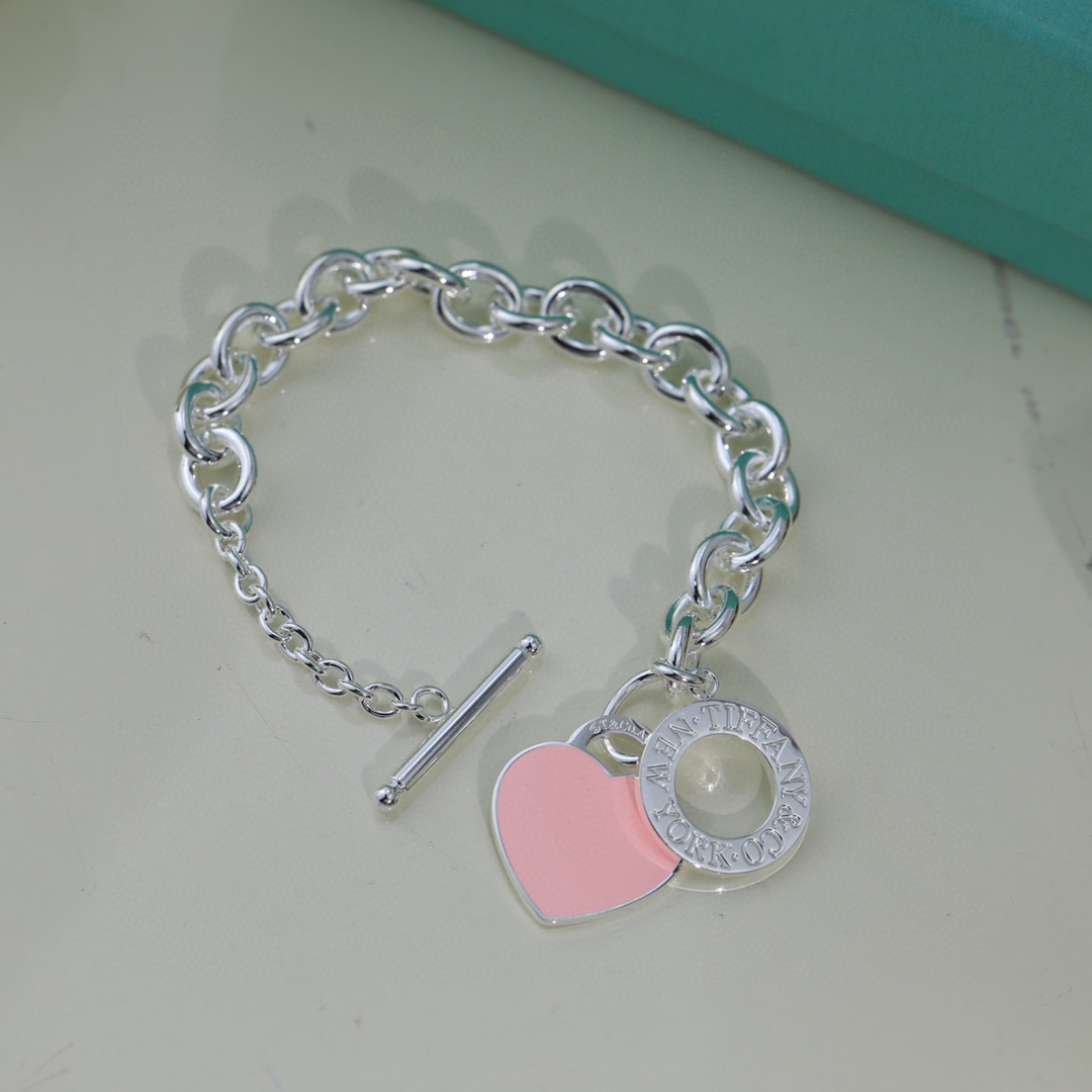 💰238 Tiffany手链👼】爱心手链 亚金材质❤蒂芙尼/Tiffany & Co./蒂芙尼樱花粉蓝色双心珐琅手链 Tiffany以爱与美、罗曼蒂克与梦想为题