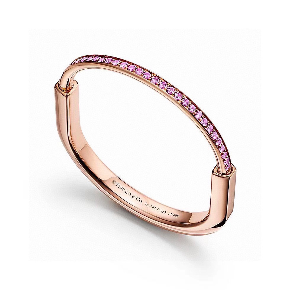 💰320 👑Tiffany 蒂芙尼 新款火爆登场 U型锁 分色 手镯 欧美范十足 人手必备 超精工打造 电镀18k金 防过敏处理 粉钻手镯 💰