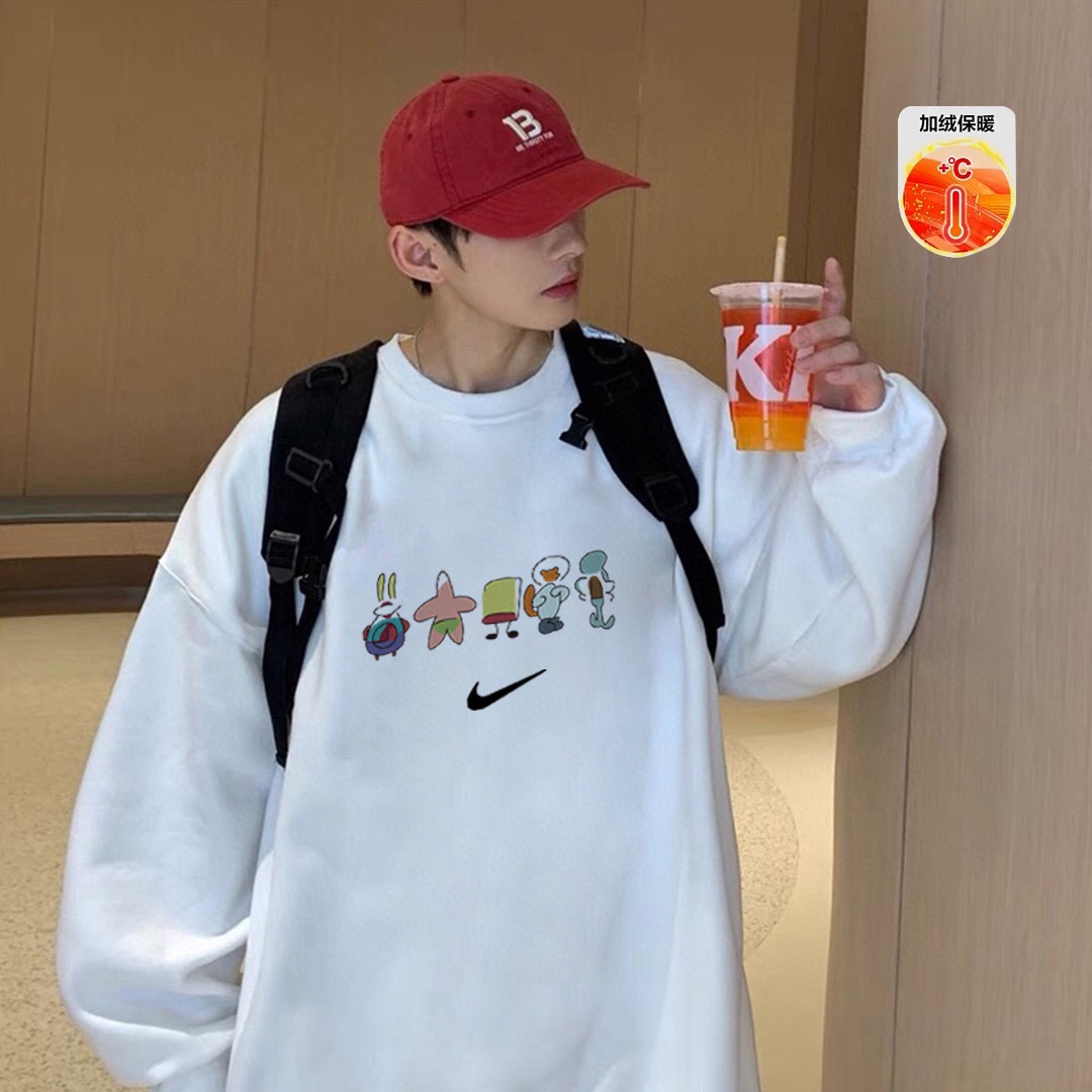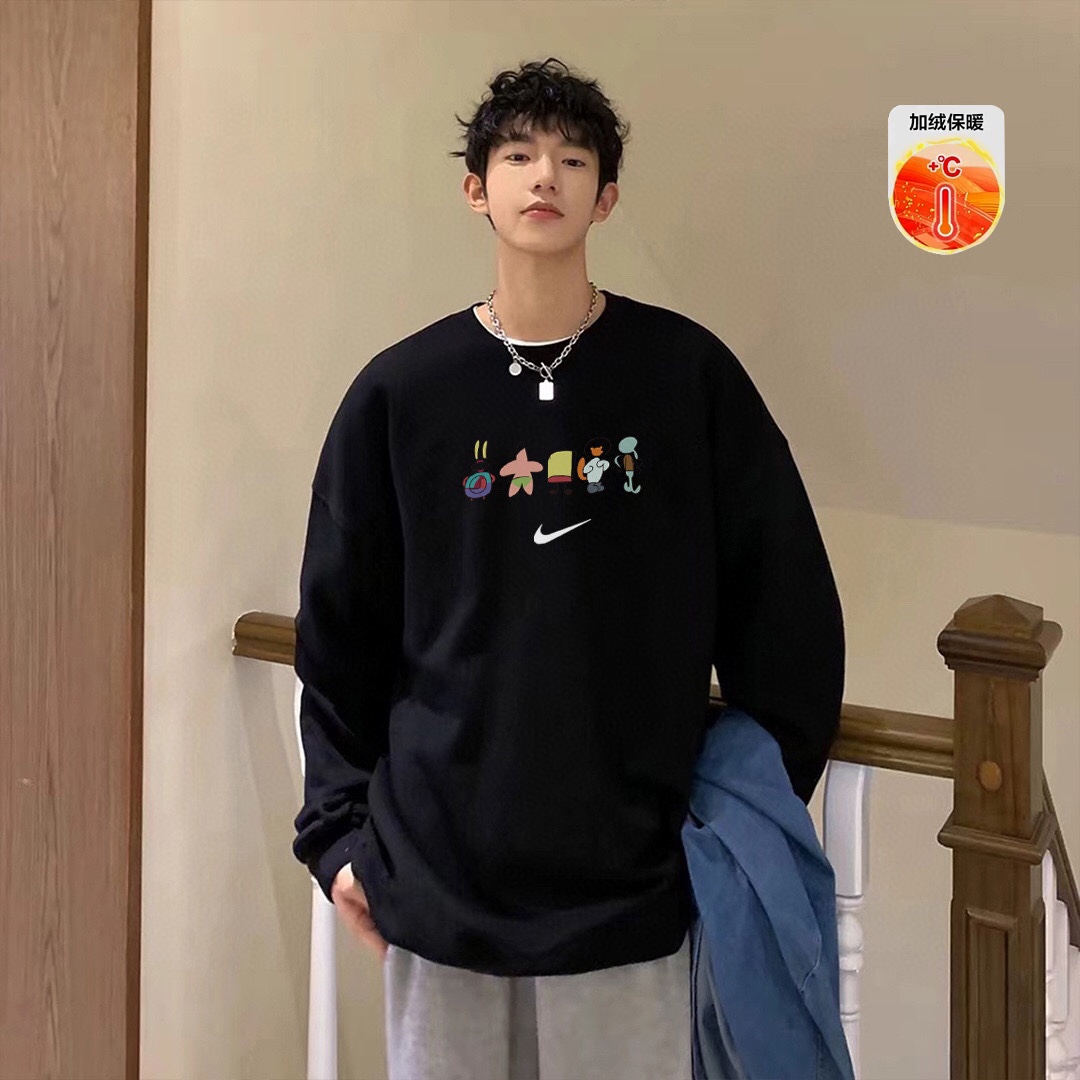 💰185 NIKE 耐克 海绵宝宝插画 小图案 加绒保暖 圆领卫衣 男女同款 采用原版定制420g轻氧棉面料内里超重磅设定 银狐绒加绒内里 索温蓄热 不惧寒冷 搭配原版320g 2x2螺纹 高密拼接不易变形。 原版领标 吊牌 一应俱全 品质升级。 颜色:黑/白 尺码:M L XL(尺码表图9) 注: 落肩袖设计 版型偏大 平时穿衣习惯偏合身 建议选小一码