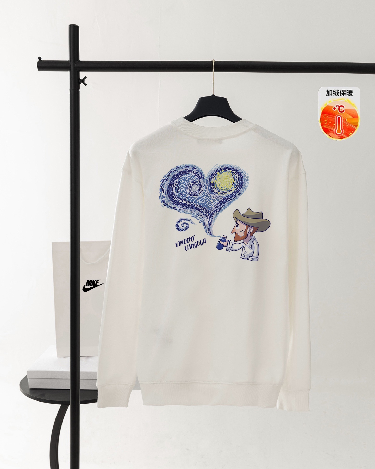 💰185 NIKE 耐克 梵高星空🌃涂鸦 爱心 加绒保暖 圆领卫衣 男女同款 采用原版定制420g轻氧棉面料内里超重磅设定 银狐绒加绒内里 索温蓄热 不惧寒冷 搭配原版320g 2x2螺纹 高密拼接不易变形。 原版领标 吊牌 一应俱全 品质升级。 颜色:黑 白 尺码:M L XL(尺码表图9) 注: 落肩袖设计 版型偏大 平时穿衣习惯偏合身 建议选小一码