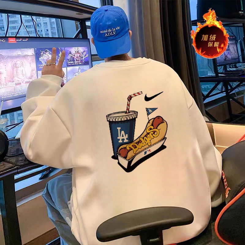 💰185 NIKE 耐克 前后热狗🌭️可乐 mlb联名款 加绒保暖 圆领卫衣 男女同款 采用原版定制420g轻氧棉面料内里超重磅设定 银狐绒加绒内里 索温蓄热 不惧寒冷 搭配原版320g 2x2螺纹 高密拼接不易变形。 原版领标 吊牌 一应俱全 品质升级。 颜色:黑色 / 白色 尺码:M L XL M【170cm】:衣长70/胸围112/(适合130斤以内) L【175cm】:衣长73/胸围118/(适合160斤以内) XL【180cm】:衣长75/胸围124/(适合190斤以内) 注: 落肩袖设计 版型偏大 平时穿衣习惯偏合身 建议选小一码