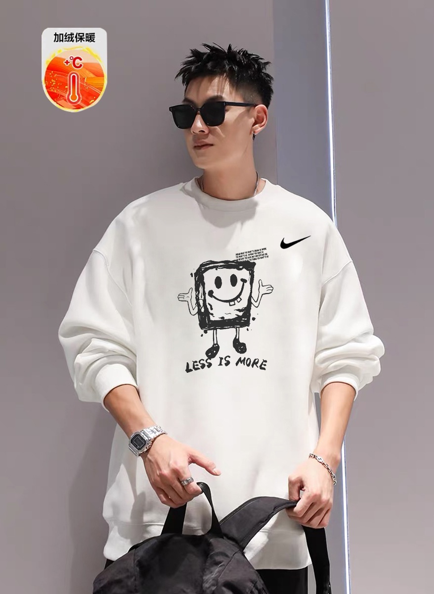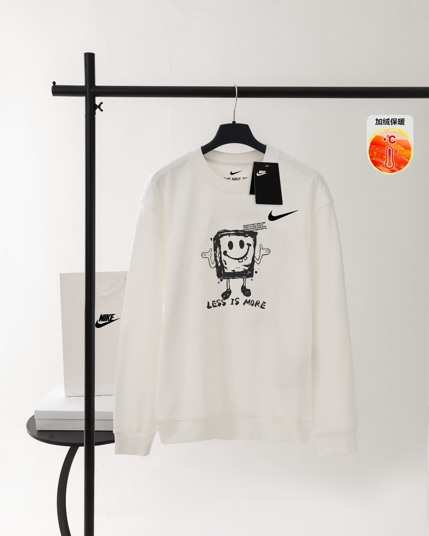 💰185 NIKE 耐克 Less Is More 表情包 加绒保暖圆领卫衣 男女同款 采用原版定制420g轻氧棉面料内里超重磅设定 银狐绒加绒内里 索温蓄热 不惧寒冷 搭配原版320g 2x2螺纹 高密拼接不易变形。 原版领标 吊牌 一应俱全 品质升级。 颜色:黑 白 尺码:M L XL(尺码表图9) 注: 落肩袖设计 版型偏大 平时穿衣习惯偏合身 建议选小一码