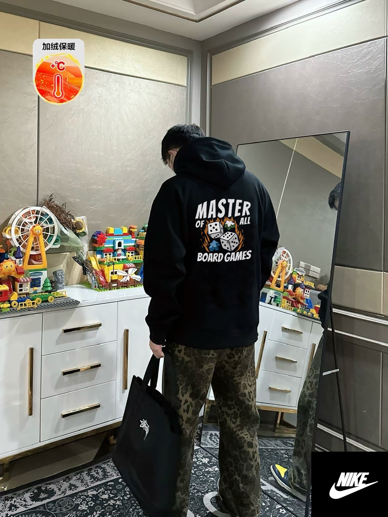 💰205 NIKE 耐克 骰子🎲复古 加绒加厚 连帽卫衣 男女同款 情侣款 采用原版定制450g轻氧棉面料 内里超重磅设定 银狐绒加绒内里 索温蓄热 不惧寒冷 下摆双排车缝线 搭配原版350g 2x2螺纹 原版领标 吊牌 一应俱全 品质升级。 颜色:黑色/白灰色 尺码数据: M【170cm】:衣长70/胸围112/(适合130斤以内) L【175cm】:衣长73/胸围118/(适合160斤以内) XL【180cm】:衣长75/胸围124/(适合190斤以内) 💡:标配帽绳如不喜欢,可自行抽出拆卸,廓形帽衫玩转不同穿法。