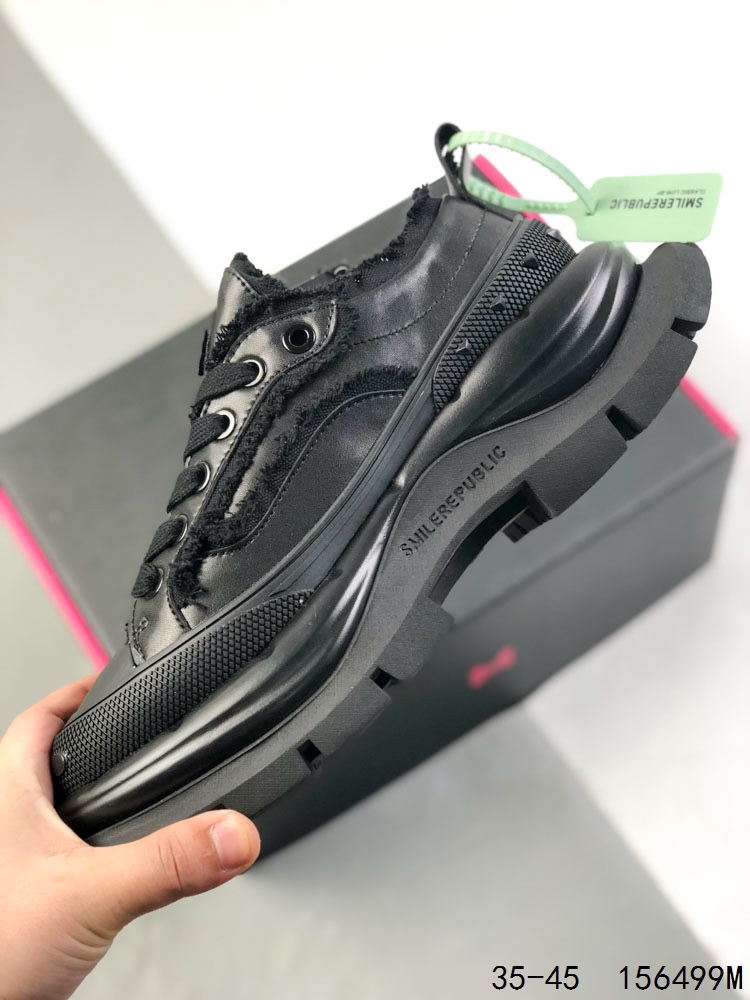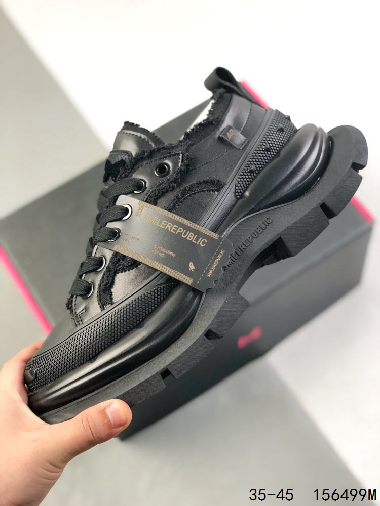 💰320 公司级✅SMILEREPUBLIC SMILE QUEEN CLASSIC 经典色 开口笑2.0 防滑耐磨增高 低帮 老爹鞋 厚底设计增强视觉冲击,低帮轮廓平衡日常穿搭,经典元素延续品牌格调叛逆色彩彰显态度理念,以纯粹黑色为视觉语言,通过白色帆布流苏点綴边缘既保留简约复古的利落线条,又融入现代都市的通動需求。 尺码:如图 ID:156099M