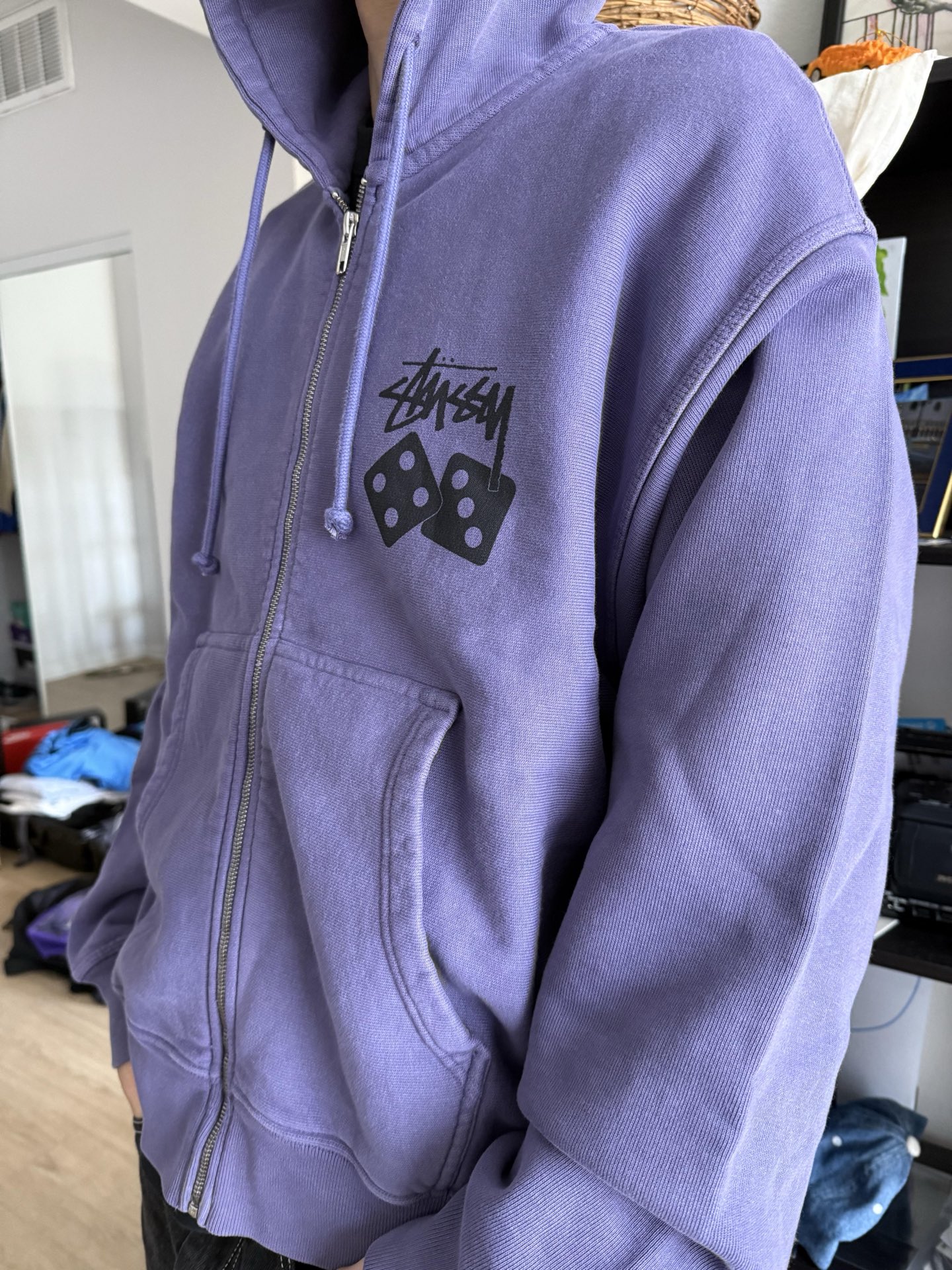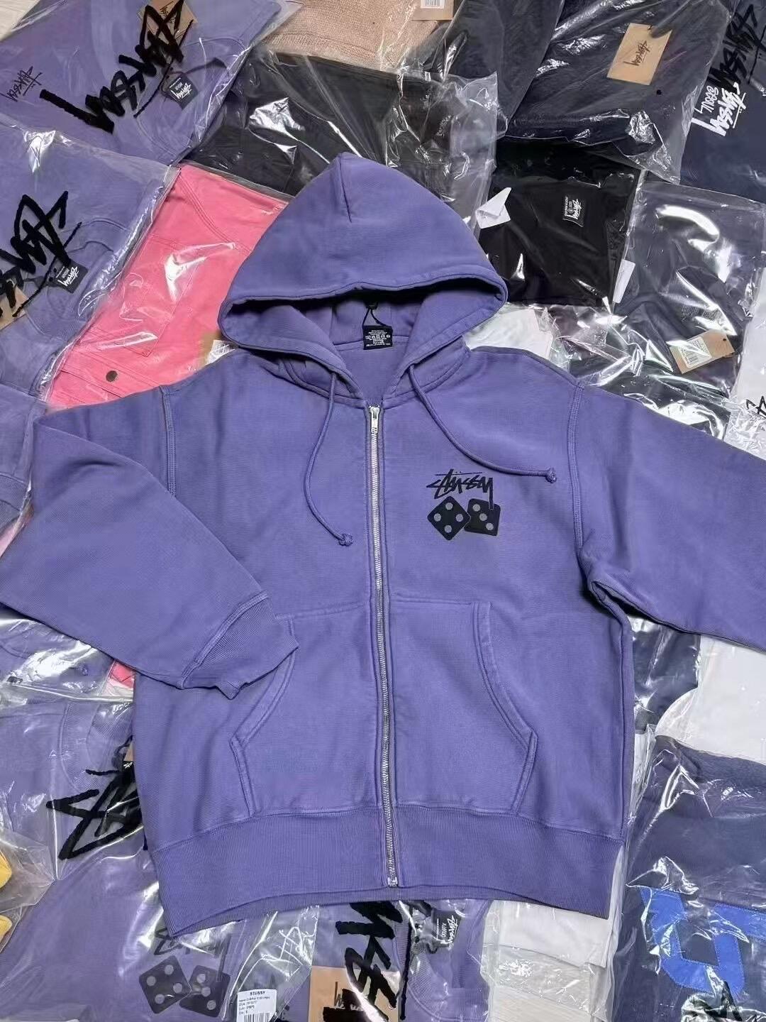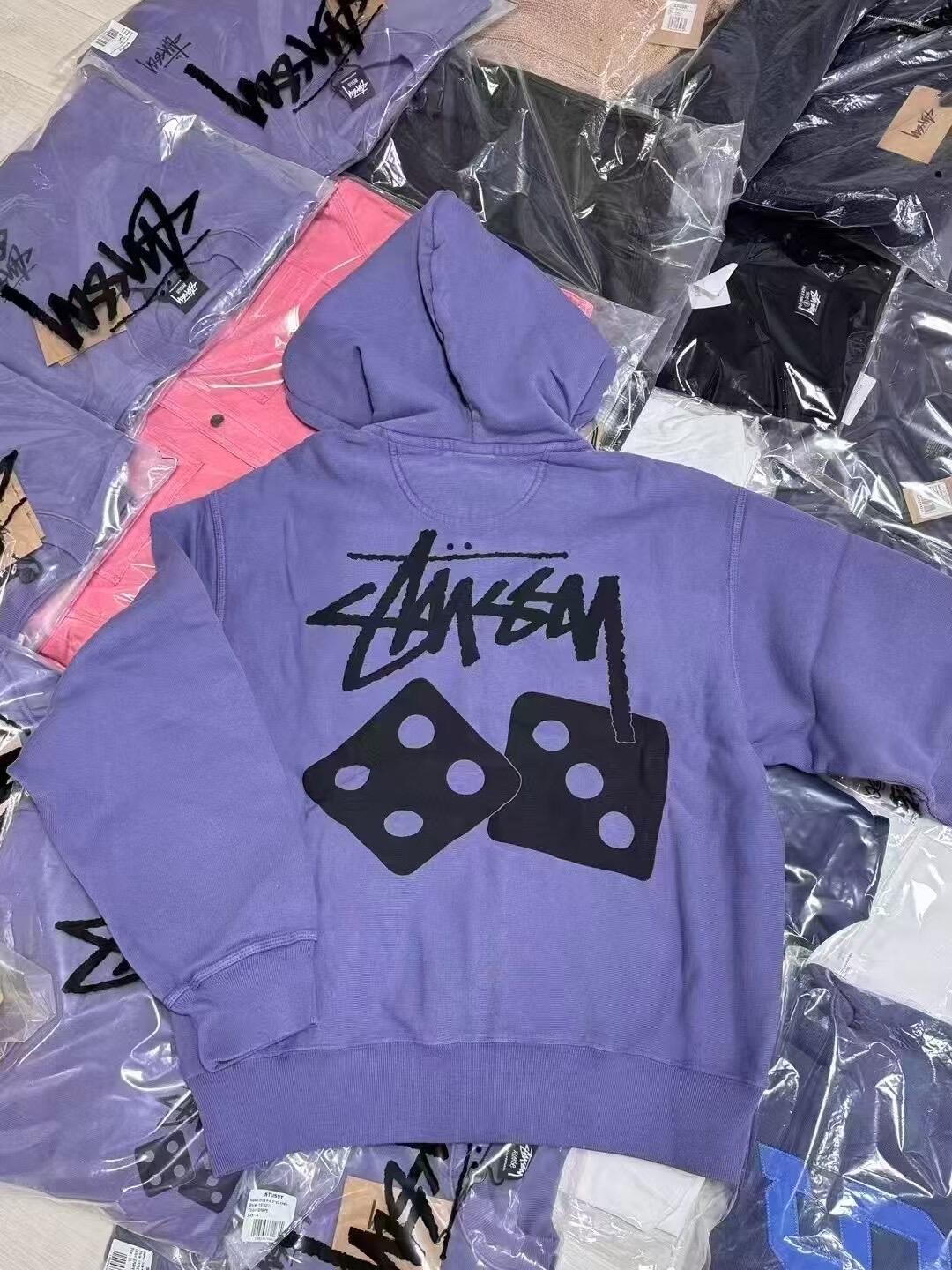 8060 💰195 (重工水洗)Stussy街头文化的象征。 将滑板服、工作服、旧校服的设计加入到斯图西的服装设计中,形成了一-种有别于原有风格的街头服装随着时间的推移,Stussy逐渐发展成为一-家全球性的时尚品牌,并与许多其他品牌和艺术家合作推出联名系列产品。 500克重磅纯棉厚实不透三标齐全吊牌原包装都和专柜一致 YKK定制拉链 折叠帽绳罗纹面料加绒领口材质正品一致印花不开裂不掉色 不缩水形 成衣染色+成衣水洗工艺。 STUSSY骰子三色拉链连帽卫衣 黑灰,蓝色,紫色 S(胸围58 衣长69 袖长63) M(胸围60 衣长71 袖长64) L(胸围62 衣长73 袖长65) XL(胸围64 衣长75 袖长66) 建议175cm及以下80-140斤S 175-180cm,140-160斤M 180-185cm,160-180斤L 185-190cm,180-200斤XL