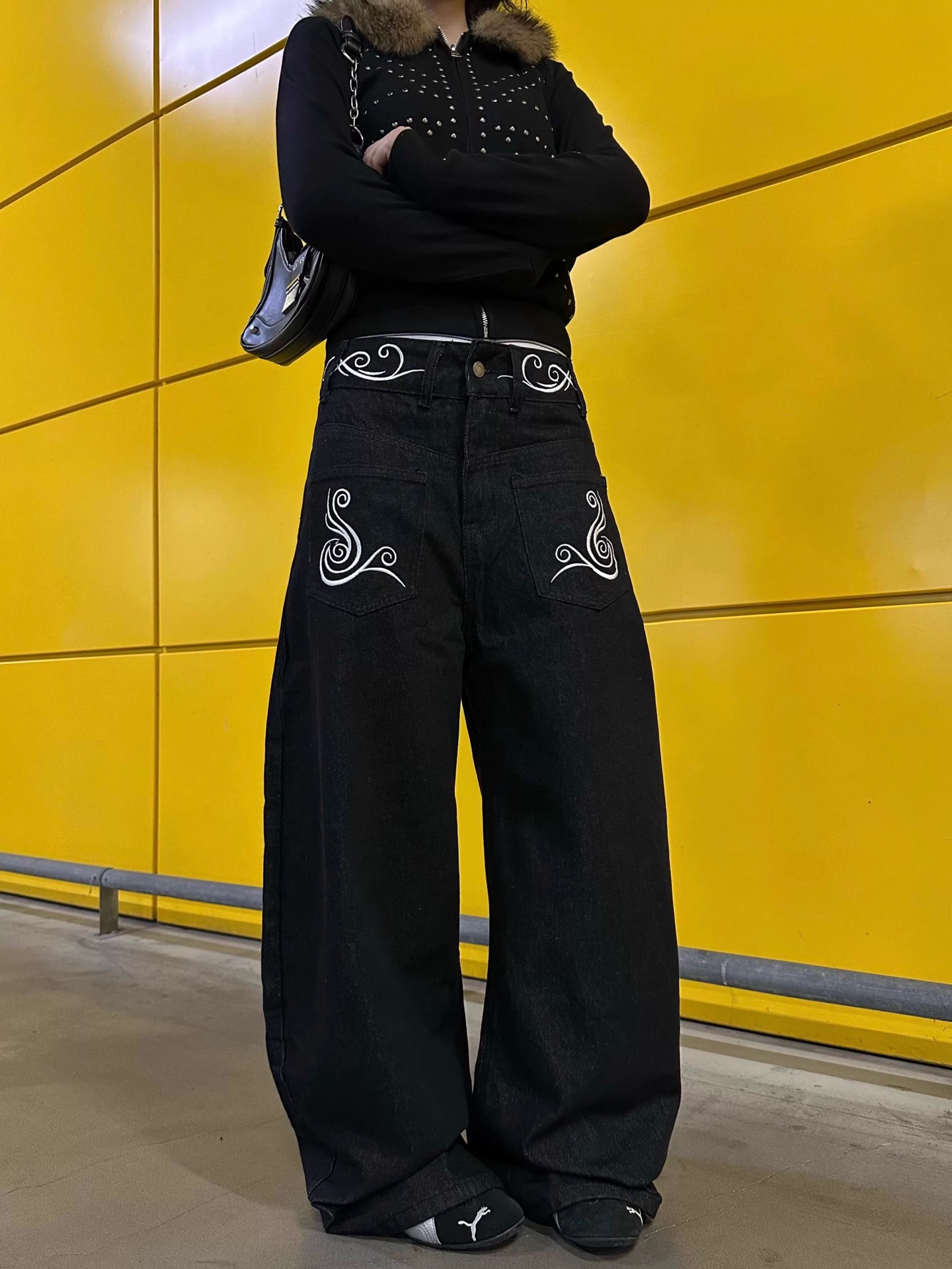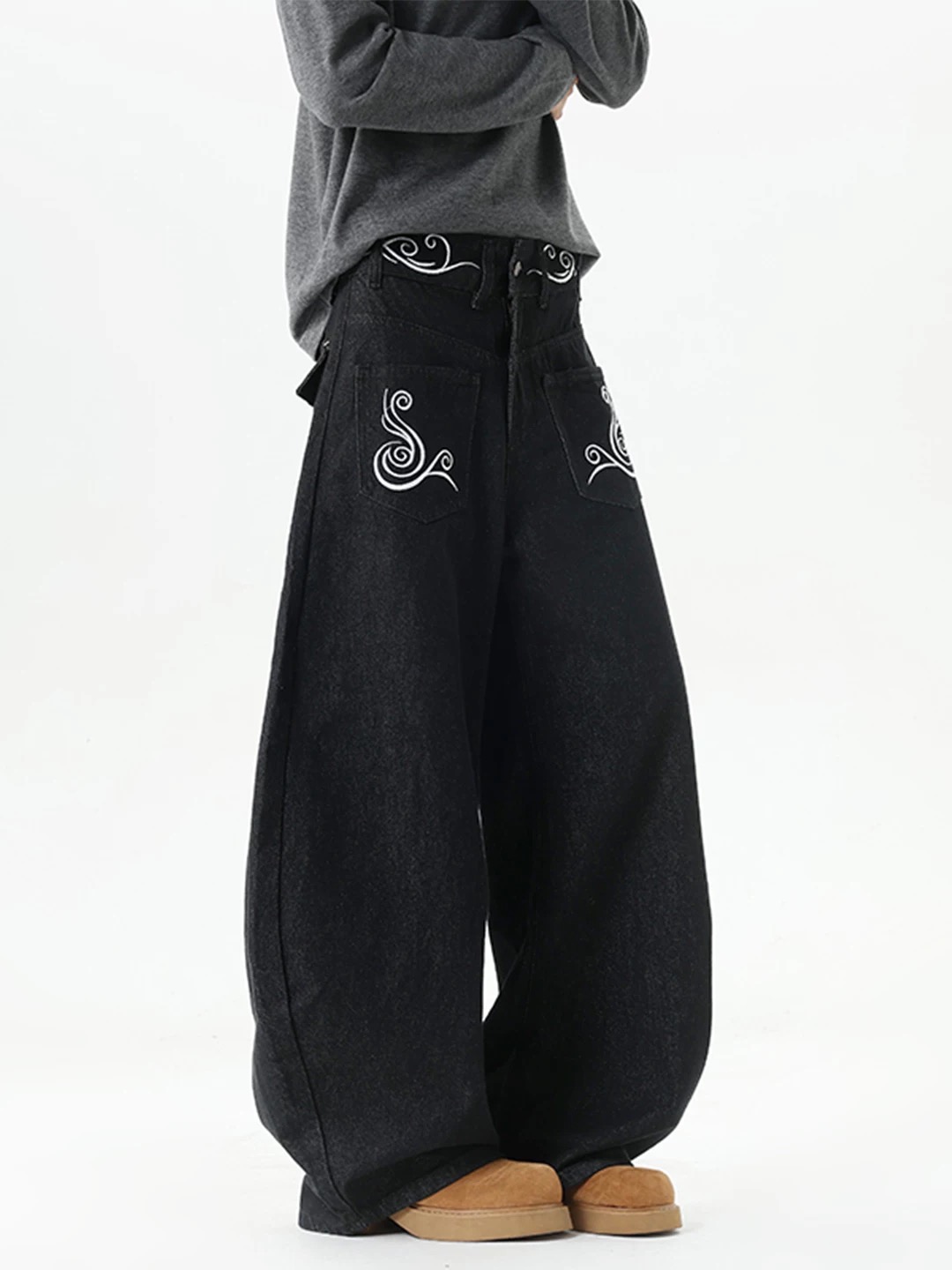 95💰 🔛款号XK3690‼️ 美式复古街头反穿刺绣牛仔裤男女cleanfit小众宽松阔腿情侣休闲裤,面料定制经过一流的高工艺水洗 ,质地紧密 色泽均匀 纹理清晰,上身非常舒适 直筒版型 可显高显瘦遮肉,适合各种身材百搭不挑人,不管您什么体型 四季可穿百搭神裤 男生女生都可轻松驾驭 情侣款! 颜色:黑色 尺码:S-XXXL 身高 体重 建议码数 155-165CM 80-100斤 S 160-170CM 100-120斤 M 160-175CM 120-135斤 L 165-180CM 135-150斤 XL 170-185CM 150-165斤 2XL 175-190CM 165-180斤 3XL
