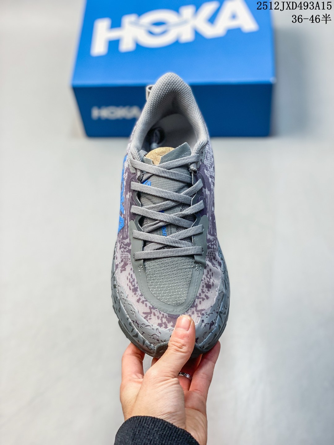 💰140 Hoka One One男女运动鞋,Mafate Speed 4 系列 飞速马法特4 减震回弹透气越野跑鞋。MafateSpeed 4 是需要舒适性和多功能性的小径的绝佳选择。上侧是提花网,其厚度足以抵抗污垢,无需任何额外的覆盖层。脚趾上方是透气、有弹性的网布,可让鞋面扩展以适应您的脚部。在此之下,ProFly中底在最靠近您的脚部放置了轻质泡沫,当您在坚硬的地面上跑步时,这会提高您的舒适度,而底层则足够坚固,可以在相当大的岩石上行驶并保护您的脚底。当您进入陡峭或泥泞的地形时,鞋子仍然闪闪发光。外底经过重新设计,脚下有更多橡胶。每个凸耳都有三个不同的层,为您提供大量锋利的边缘以紧贴地面。 类型:男女鞋 货号:1129930 尺码:36-45含半码 编码:12JXD493A15