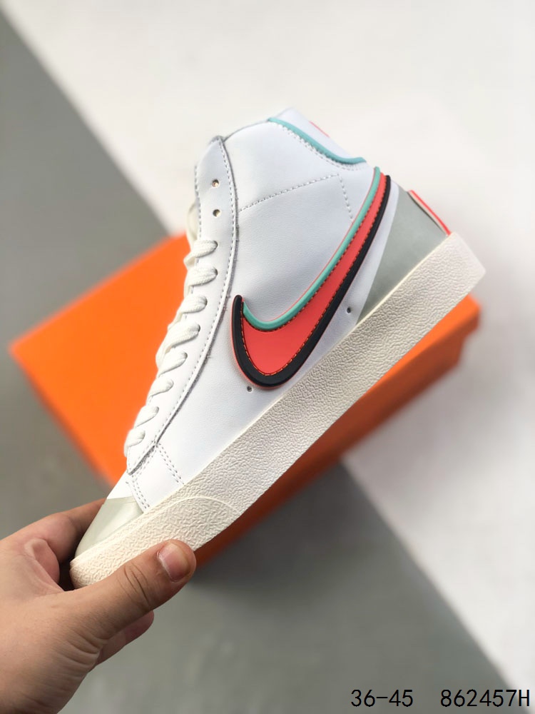 💰130 耐克 NIKE Blazer mid vintage开拓者 高帮男女子运动板鞋 厚底增高休闲鞋。采用轻盈利落设计,焕新演绎经典鞋款。该鞋款带来舒适足底体验,结合鞋侧壁加固设计,缔造舒适感受。皮革鞋面适合日常穿着,柔软非凡,硫化结构将外底与鞋面巧妙熔接,打造出众柔韧灵活性和复古风格。硬质橡胶外底融入人字形底纹,铸就非凡抓地力,彰显经典风范。加垫鞋口,一体式鞋头护条。 尺码:如图 货号:DC1746 ID:862457H