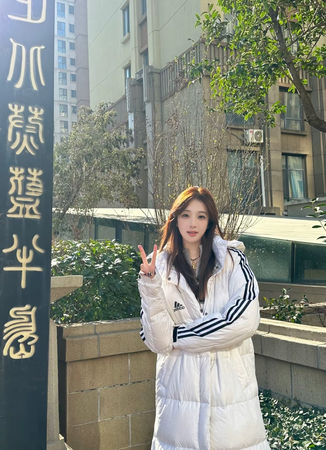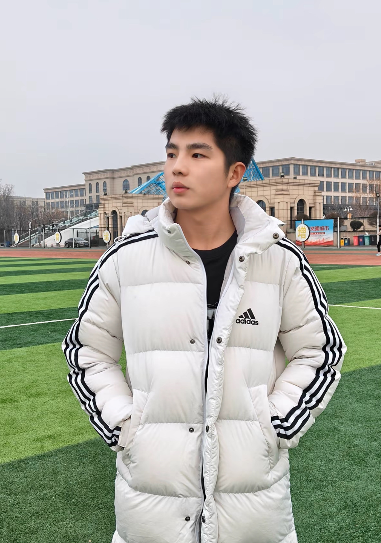 Adidas 阿迪达斯 2025年冬季 男女情侣款中长款连帽羽绒服 上身效果#