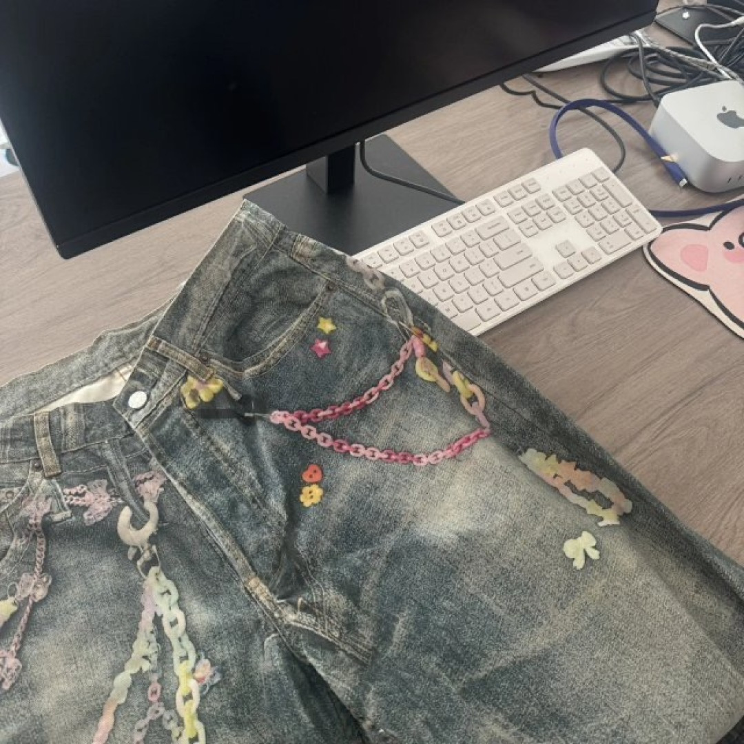 正品原版🆚大货 无水印生产/对比素材图 S# Acne Studios 25FW 糖果链条印花牛仔裤 真正原版购回开发打版 高端零售专供 品质保证 100%放心出街