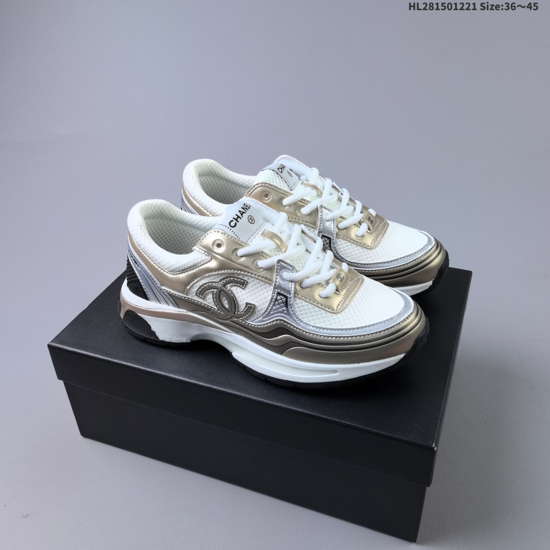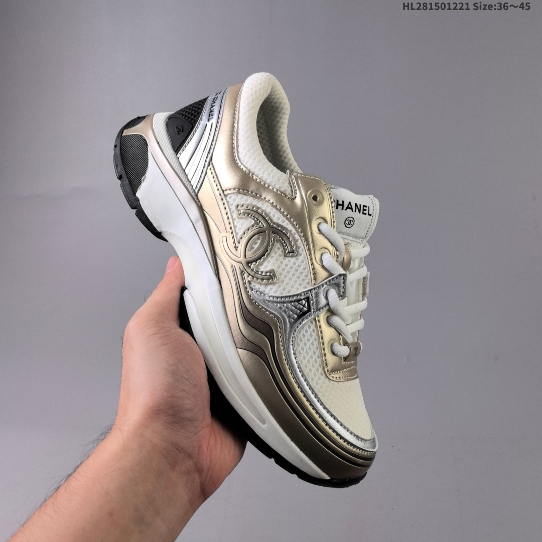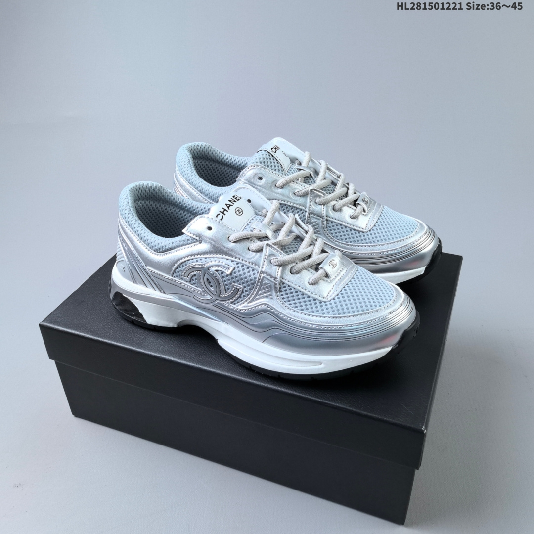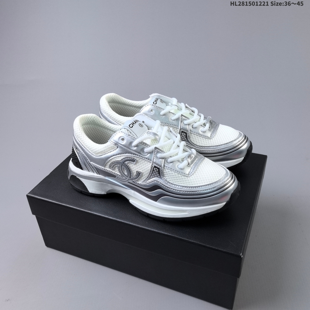 集合💰150 Chanel/香奈儿 复古风满满的质感!法国奢侈品品牌·香奈儿Chanel Cruise Logo Casual Low 克鲁斯系列低帮轻便复古老爹风百搭休闲运动慢跑鞋“银白黑 G39792 Y56368 编码:HL281501221 Size:36~45