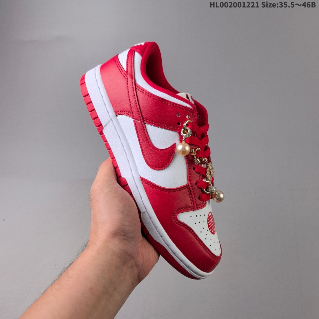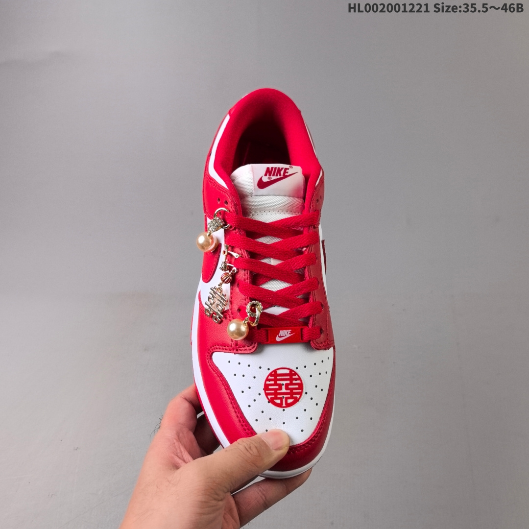 💰200 Nike Dunk SB Low 耐克 SB 低帮 珠韵喜 男女同款 秀禾婚鞋 新中式国风 备婚新娘晨袍结婚情侣日常两用百搭喜庆简约轻便低邦板鞋 该定制版球鞋选用原鞋款为Nike Dunk SB Low柔软舒适薄底防滑耐磨低帮板鞋红色,这款鞋巧融经典与传统元素,灵感源自中国传统喜庆文化。红白配色鲜明亮眼,既具视觉张力,又象征吉祥美好,传递浓厚喜庆氛围。鞋带上的珍珠、“喜”字、莲花等挂饰,不仅是精致装饰,更生动诠释东方韵味。每处细节皆含对传统的敬意与创新追求。 货号:CU1727-100(2025.09.20发售) 尺码:35.5 36 36.5 37.5 38 38.5 39 40 40.5 41 42 42.5 43 44 44.5 45 46 HL002001221 Size:35.5~46B