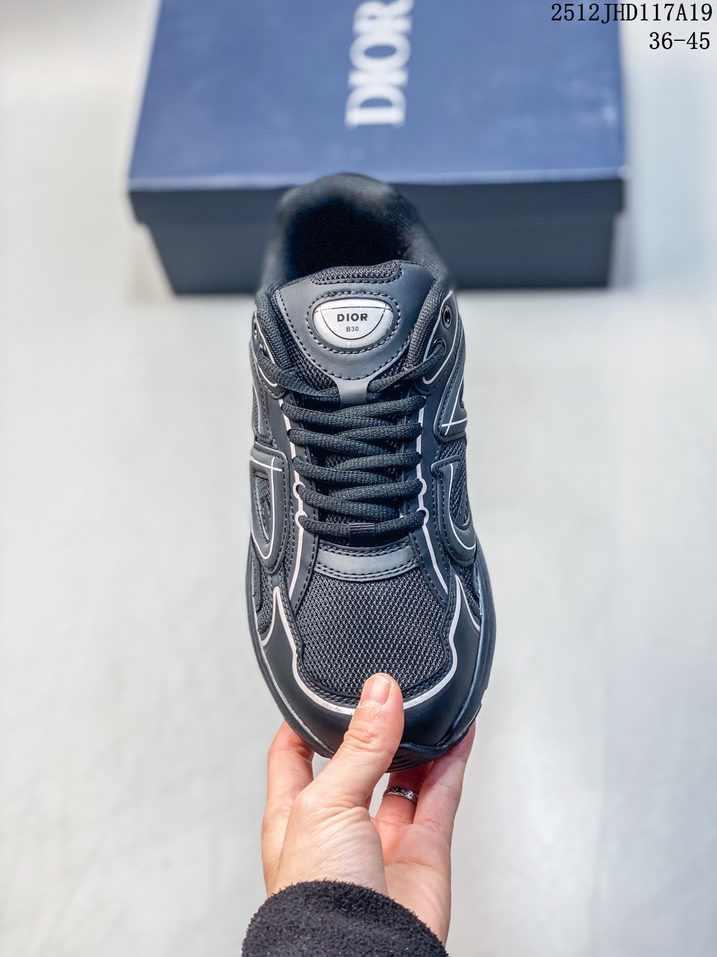 顺应复古市场的趋势的 Dad Shoes风格鞋款鞋舌上的Dior标志 也注明了这双鞋是B30的型号!B30运用了质感细腻的皮革和网眼布面材质拼接成鞋身,鞋身两侧有显眼的字母CD 表明身份,鞋身多处线条勾勒细节 让鞋子看起来不那么单调、复古味十足
